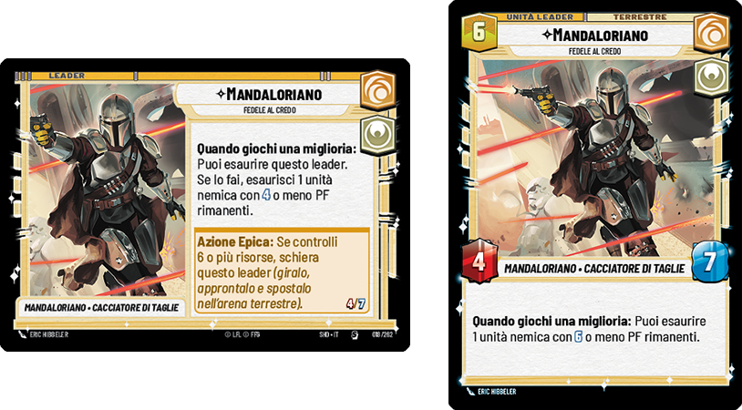 Una delle carte più attese, la carta unità Grogu, permette ai giocatori di esaurire un’unità nemica, rispecchiando le potenti ma estenuanti abilità di Grogu viste nella serie Disney+, The Mandalorian. Questa carta, in combinazione con la carta unità Mandaloriano, rappresenta il legame protettivo tra i 2 personaggi, offrendo ai giocatori una nuova profondità strategica e un gameplay tematico.