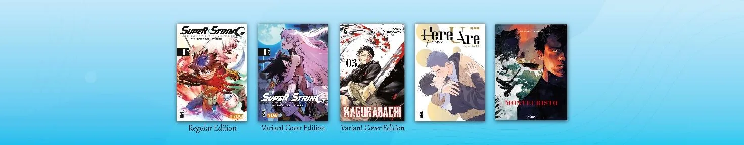 Dal 13 maggio sarà disponibile il primo numero di SUPER STRING: MARCO POLO’S TRAVEL TO THE MULTIVERSE, anche questo in edizione Regular e Variant. Immancabile, il numero 3 di KAGURABACHI in edizione Variant Cover e il volume speciale HERE U ARE FOREVER – EXTRA STORIES, con contenuti e storie inedite.