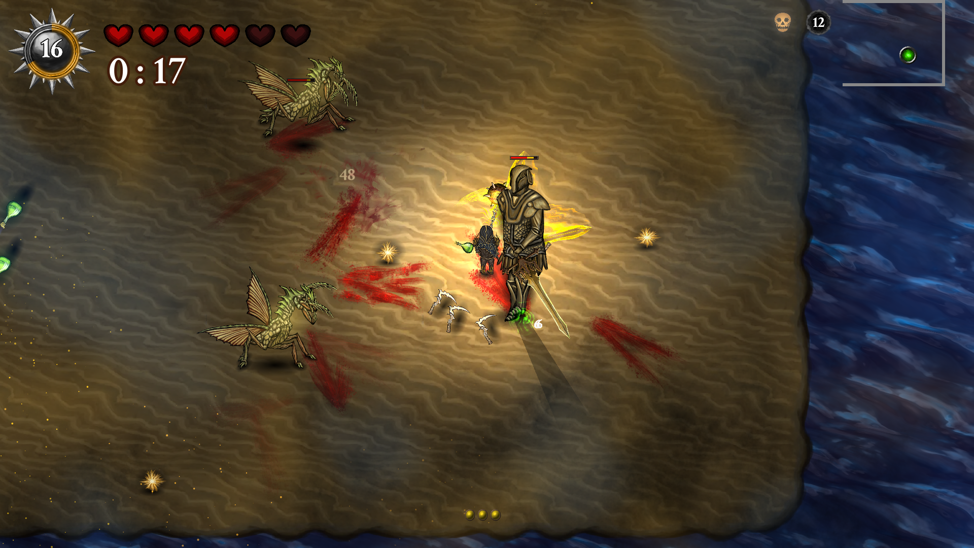 Per ogni round di sopravvivenza abbiamo, sostanzialmente, due scelte: attaccare o scappare. La prima è, sicuramente, la più produttiva dato che, per i round successivi, avremo necessità di ampliare le abilità salendo di livello. I mostri che uccideremo potranno lasciare dei frammenti di luce che potremo raccogliere per evitare lo spawn di mostri d’élite, nemici più forti da contrastare ma che dropperanno bonus più produttivi.
