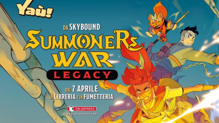 Summoners War: Legacy è un graphic novel prodotto dalla Skybound di Robert Kirkman e ambientato nel mondo dell’acclamato videogame strategico online Summoners War: Sky Arena. Un’epopea fantasy scritta da Justin Jordan e disegnata e colorata dagli italiani Luca Claretti e Giovanna Niro. È arrivato in Italia il 7 aprile grazie a Yau’, la linea young adult di sapdapress. L’opera mantiene fedelmente le atmosfere tipiche della creatività sud coreana e delle ambientazioni fantasy. Preparatevi dunque a una serie di grandi battaglie, disegni coinvolgenti, una trama appassionante, tanta avventura e umorismo.