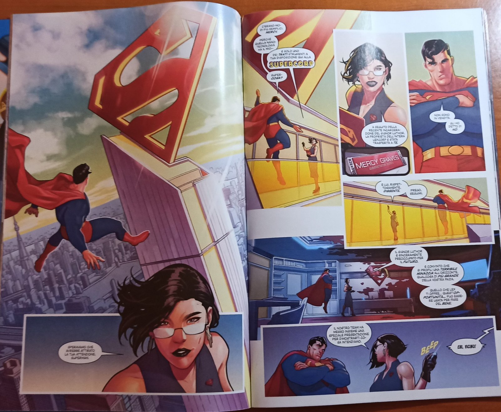 Superman è molto contrario all’idea e vorrebbe lasciare a Mercy tutti i diritti che possiede sulla Supercorp che Luthor gli ha scaricato da dietro le sbarre, ma, non è così semplice; la Supercorp potrebbe essere davvero utile per Superman e per proteggere Metropolis grazie alle risorse di cui dispone e offre. Ma è pur sempre proveniente da Luthor, una più che buona motivazione per Clark per diffidare da ogni cosa proveniente dall’azienda.