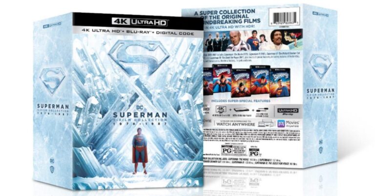 La Superman 1978-1987 5-Film Collection contiene cinque film su 10 dischi, Blu-ray UHD con i lungometraggi in 4K con HDR e Blu-ray con i lungometraggi e gli extra in HD, oltre alle versioni digitali di ciascun film. Il set è disponibile anche in una collezione steelbook in esclusiva su Amazon, completa di fumetto Superman ’78 #1, libro fotografico, scheda lenticolare e certificato di autenticità.