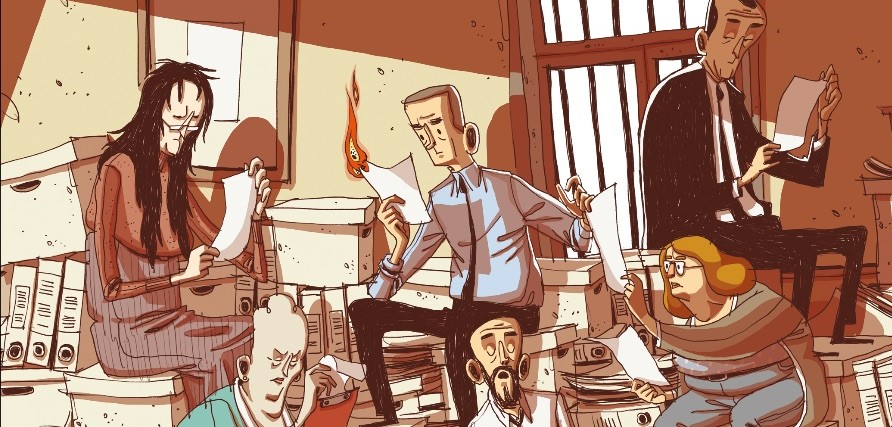 Un ufficio pieno di semplici impiegati, il volto meno terribile ma comunque…