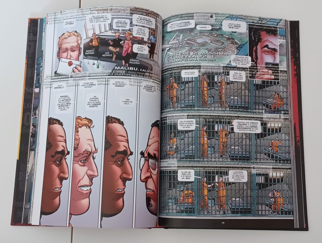 Questa è una storia grafica in tutti i sensi. Il sesso e la violenza espliciti sono presenti quasi in ogni pagina e ci sono molti personaggi da tenere sotto controllo. Le transizioni tra le scene sono spesso brusche, a volte con testo o dialoghi sovrapposti, una tecnica che non mi è capitata di vedere spesso in un fumetto. Questa è una storia da leggere tutta d’un fiato per non perdersi dei passaggi. Si può dire che questa sia una storia con l’aria da satira ma con un fare da parodia che si intravede grazie alle situazioni al limite dell’assurdo.
