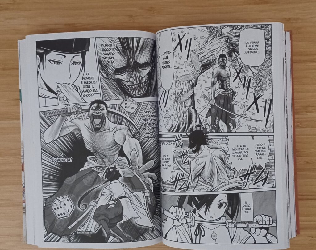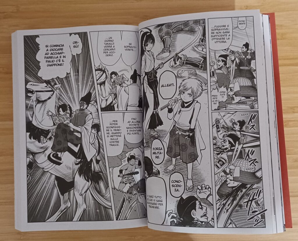 Nel primo volume questa cosa si nota alla grande e per creare una storia coinvolgente devono essere apportate delle modifiche alla storia originale. Cercando d’inserire dialoghi, tavole e personaggi inerenti sia alla storia impostata dall’autore sia fedele agli scritti storici che fanno parte della storia dell’antico Giappone. Qui il mangaka riesce a creare un delizioso connubio con il fascino e la violenza del Giappone Feudale e la comicità dei suoi personaggi, che nonostante si presentino come dei duri senza cuore, nel corso delle prime pagine notiamo subire le intenzioni di Matsui nel creare una storia che rispetta sì il passato, ma che disegna una versione più “easy” di quei tempi duri, ancora oggi tra i più cruenti della storia nipponica.