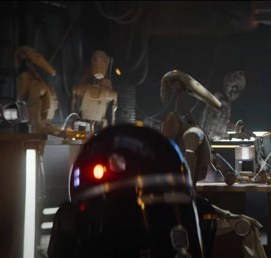 A metà del trailer, in quello che sembra essere una sorta di bar per droidi, si vedono alcuni Droidi da Battaglia a un tavolo sullo sfondo.