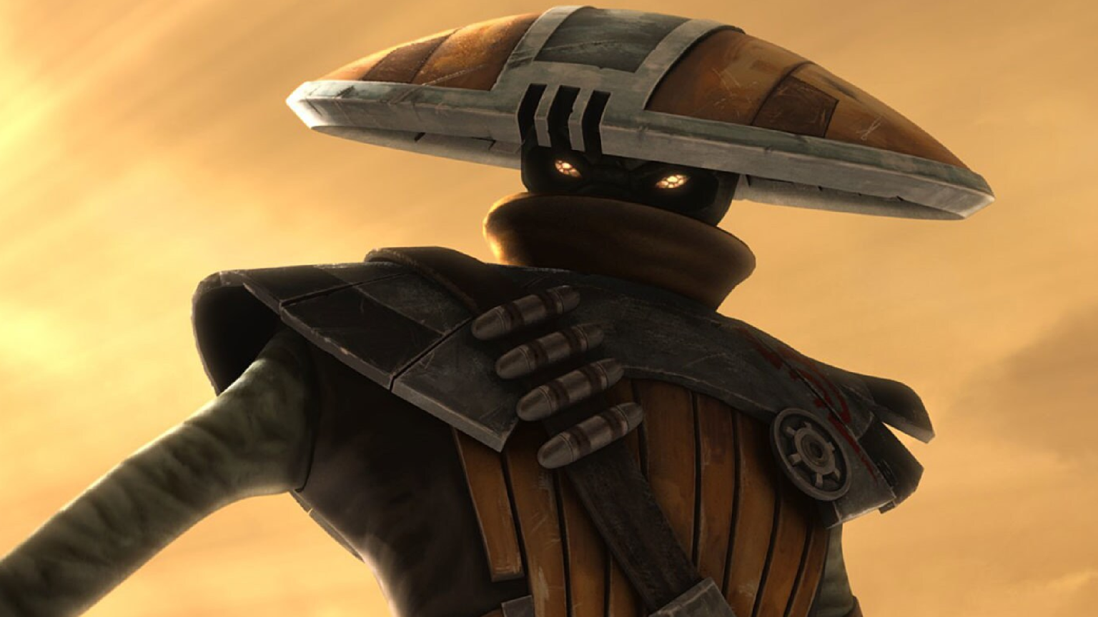 Considerando che Boba Fett si è “ritirato” per regnare su Tatooine e Cad Bane è fuori dai giochi, Embo rappresenta oggi la minaccia fisica più temibile per il nostro Mandaloriano.