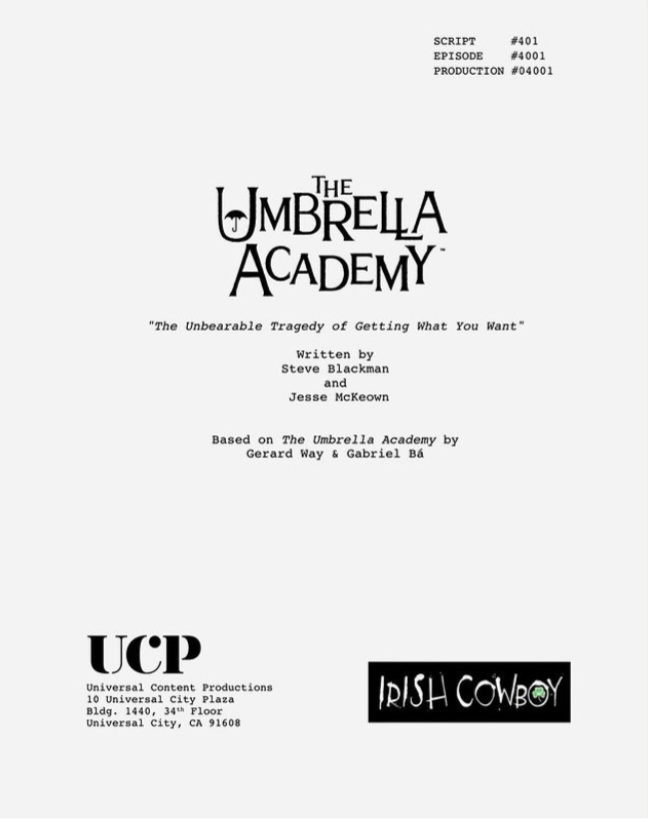 Blackman ha condiviso sul suo Instagram un’immagine che rivela la copertina del copione dell’episodio principale della quarta stagione, aggiungendo la nota “E così inizia… un’ultima volta” con emoji del cuore e dell’ombrello. La pagina accredita Jesse McKeown come sceneggiatore dell’episodio e ne rivela il titolo ironico: “L’insostenibile tragedia di ottenere ciò che si vuole”.