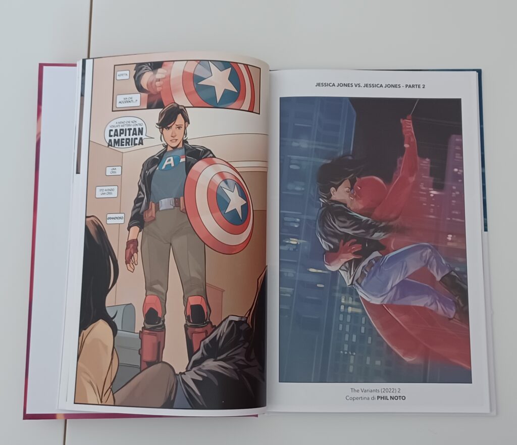 La narrazione di The Variants riesce a eccellere sia come storia multiversale che come storia investigativa. Un altro elemento che mi ha fatto apprezzare la storia è che il “colpo di scena”, che arriva subito nelle prime pagine del volume, funziona sia per i fan che sono ben consapevoli degli elementi multiversali ma che avranno comunque delle sorprese, sia per coloro che sono semplicemente attratti dall’idea di un nuovo albo di Jessica Jones, che saranno spiazzati da quello che succede.