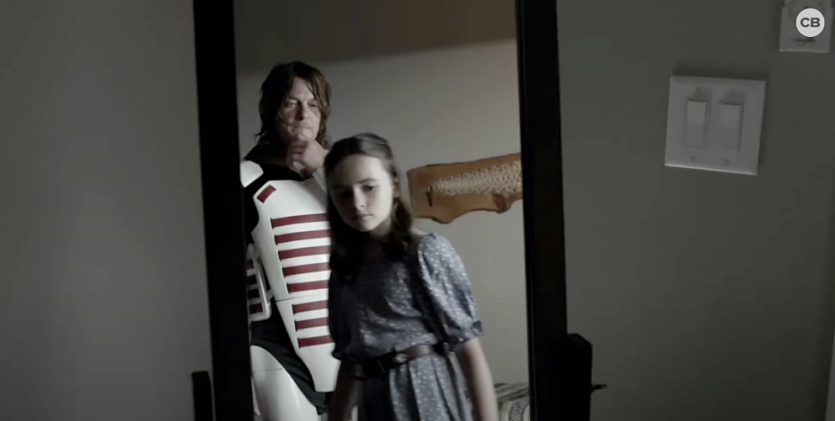 Trovate il frame del trailer con Daryl che indossa l’armatura dei soldati del Commonwealth subito sotto.