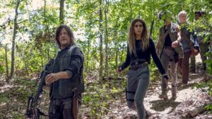 La Safe-Zone di Alexandria è stata ricostruita, con Aaron (Ross Marquand) e Gabriel tra i suoi leader. Negan si è trasferito altrove. Maggie e suo figlio, Hershel Rhee (Kien Michael Spiller), sono tornati a Hilltop. “Voglio parlare del futuro”, ha detto a Daryl e Carol. “Ci sono molte cose da scoprire e credo sia arrivato il momento di farlo”.