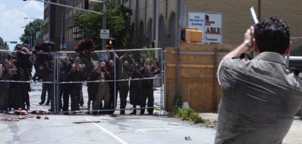 In una stazione di servizio della Georgia, Rick Grimes (Andrew Lincoln) vede una bambina (Addy Miller) raccogliere un orsacchiotto da sotto un’auto. Solo quando la bambina si gira, Rick capisce che si tratta di uno zombie, che abbatte con un proiettile alla testa.