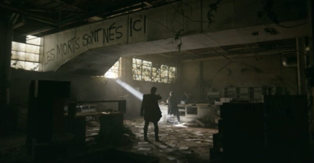 All’interno di un laboratorio francese contrassegnato da graffiti – Les morts sont nes icl, ovvero “I morti sono nati qui” – viene riprodotta una registrazione di Jenner vecchia di dieci anni, mentre un uomo armato (Oryan Landa) si confronta con un medico francese (Carey Van Driest).