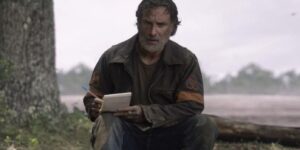 Sebbene i momenti finali di The Walking Dead siano caratterizzati da un salto di un anno dopo il conflitto del Commonwealth, la scena di Rick è un flashback di anni prima. Rick viene mostrato mentre ripone in una borsa l’iPhone inciso che Michonne ha scoperto nella decima stagione di The Walking Dead e lo getta su una barca. Dato il momento in cui Michonne ha trovato l’iPhone, significa che la scena in questione è avvenuto qualche anno prima dell’imminente spin-off.