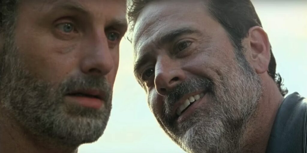 Rick e Negan vengono spesso messi a confronto perché entrambi hanno giustificato i loro mostruosi atti di violenza come mali necessari per far funzionare i rispettivi gruppi. Negan, però, si è spinto troppo in là come leader dei Salvatori: lo squilibrato dittatore ha abusato emotivamente delle sue numerose “mogli”, ha bruciato pubblicamente i trasgressori delle regole e ha colpito a morte Glenn e Abraham con Lucille. Se Rick diventerà un ufficiale di alto rango della Repubblica Civica, dovrà commettere atrocità paragonabili a quelle compiute da Negan per contribuire a rendere la CRM una comunità più potente.