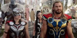Diretto da Taika Waititi, Amore e tuono è uscito nelle sale all’inizio di quest’anno come parte della Fase Quattro del Marvel Cinematic Universe. Il film riprende Thor Odinson dopo gli eventi di Avengers: Endgame, con il Dio del Tuono alle prese con i suoi sentimenti sull’amore, la perdita e il suo posto nell’universo. Nel frattempo, Jane si rivolge alla vecchia arma di Thor, Mjolnir, durante la sua battaglia contro il cancro, diventando così il Potente Thor. Gli ex amanti si riuniscono giusto in tempo per affrontare una nuova minaccia sotto forma di Gorr, che cerca di sterminare tutti gli dei.