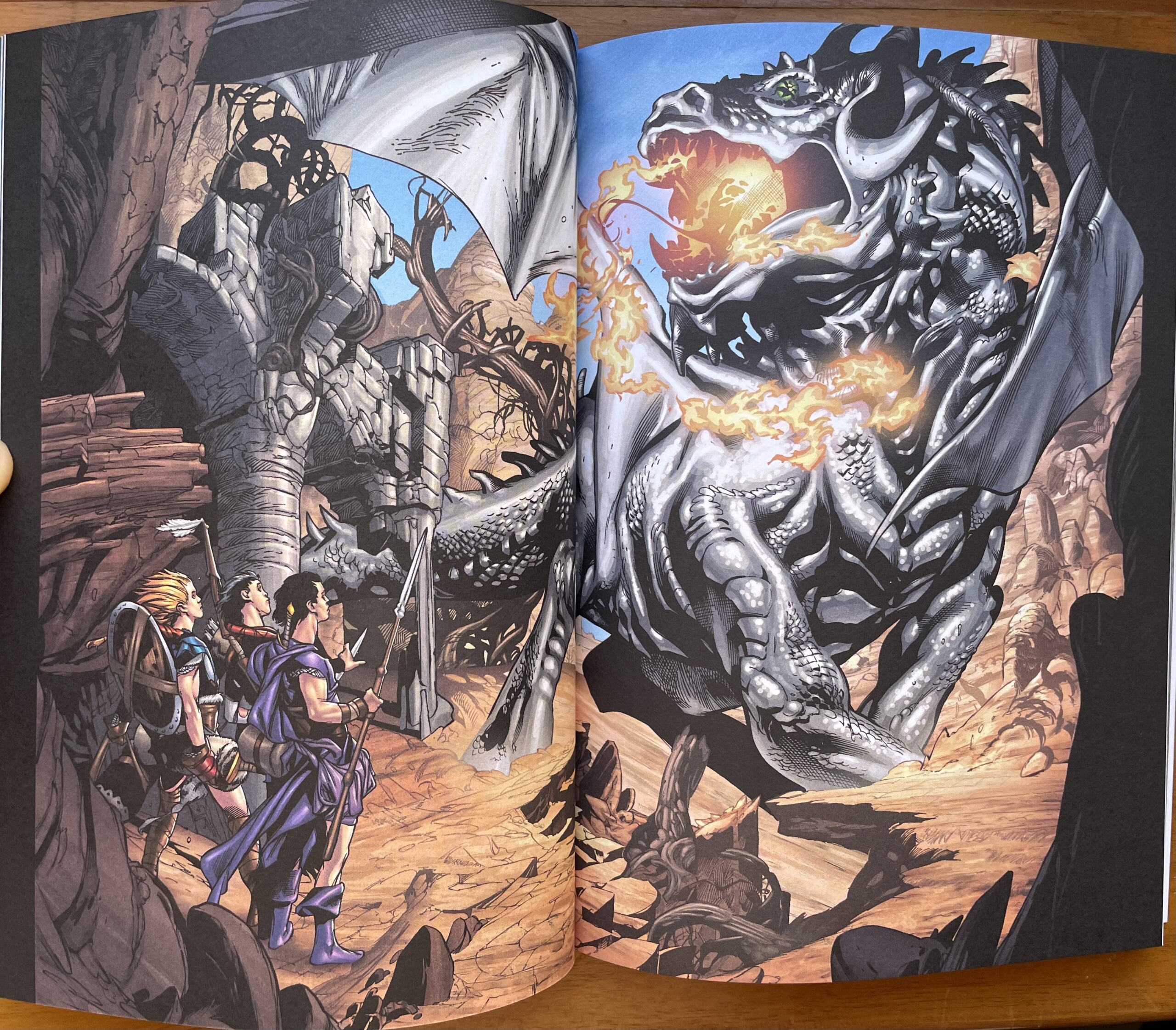 Il legame di amicizia e complicità che unisce i tre protagonisti è reso ben evidente sin dalle prime pagine. Ognuno di loro può vantare una forza straordinaria, ma è insieme che riescono a dare il meglio e ad affrontare ogni difficoltà. Loki cerca di intromettersi e di far litigare i tre amici, ma i tentativi si dimostrano quasi sempre vani. In ciascun capitolo di questo primo arco narrativo, i protagonisti si ritrovano in uno scenario diverso e devono fare i conti con una nuova minaccia. Le tavole di Greg Tocchini riescono a ben delineare le caratteristiche di questi regni e delle popolazioni che li abitano, senza entrare troppo nello specifico. Ogni luogo è funzionale alla missione dei protagonisti e il focus maggiore è invece sul loro carattere, che si evince bene sia nei momenti tranquilli che nelle scene più frenetiche, quando si trovano a combattere. Anche i momenti di gelosia e di rivalità non mancano tra di loro, asgardiani di origine ma da questo punto di vista molto umani.