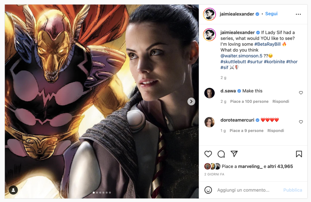 Il regista di Thor: Love and Thunder, Taika Waititi, e James Gunn (Guardiani della Galassia Vol. 3) hano apprezzato il post di Jaimie Alexander. Magari i registi hanno un’idea sul futuro del personaggio nell’MCU?