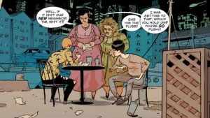 In una nuova anteprima rilasciata dalla DC, Tim esce con il suo fidanzato (anche se non hanno ancora ufficializzato le cose) da sei mesi, Bernard, e i due hanno una breve interazione con alcuni dei nuovi vicini di Tim. Si tratta di una coppia madre-figlia, chiamate rispettivamente Mère e Cam, che si avvicinano a Tim e Bernard al tavolo della loro cena nella Marina vicino alla nuova casa di Tim con dei volantini per una raccolta fondi.