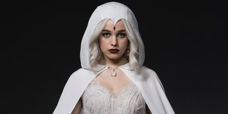 Sull’account Twitter dello show, Titans ha svelato due immagini ufficiali dell’attrice Teagan Croft vestita con il costume da White Raven, che presenta un lungo mantello bianco, un cappuccio a punta e preciso per i fumetti, stivali bianchi, guanti di pizzo e un abito bianco con elementi di pizzo. Il look da White Raven fa il suo debutto verso la fine del finale di metà stagione della Stagione 4, un episodio intitolato “Fratello Sangue”. L’episodio è uscito su HBO Max il 1° dicembre, il che significa che la serie ha aspettato un mese intero prima di pubblicare queste immagini spoiler per i fan.