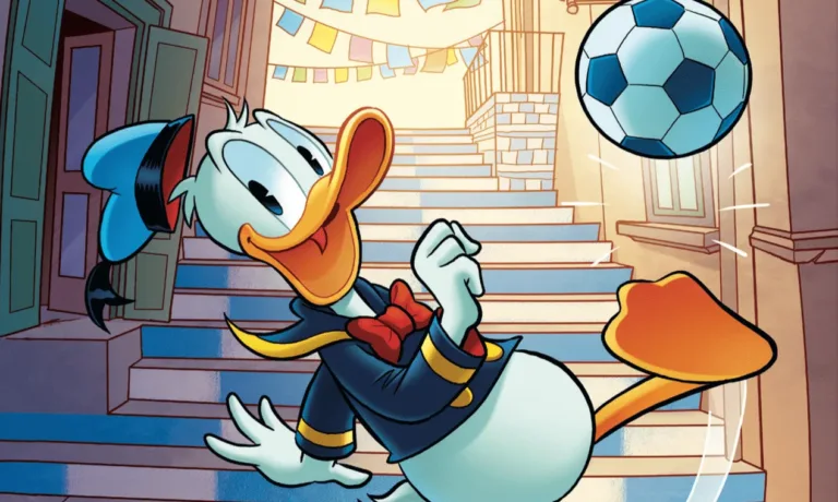 Come ogni anno, Topolino si prepara a Napoli Comicon 2025 – di scena dall’1 al 4 maggio – con un numero ricco di novità. Per l’occasione, il numero 3623 del settimanalesarà disponibile (in anteprima esclusiva in Fiera e, a partire dalla settimana successiva, in fumetteria e su Panini.it) con una speciale variant cover realizzata dal disegnatore napoletano Blasco Pisapia e colorata da Mario Perrotta, con protagonista l’inimitabile Paperino alle prese con lo sport più popolare d’Italia. Un omaggio al forte legame tra il popolo napoletano e il calcio. A impreziosire la copertina, uno speciale effetto “sabbia” sullo sfondo, a contrasto con la figura di Paperino in rilievo.