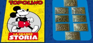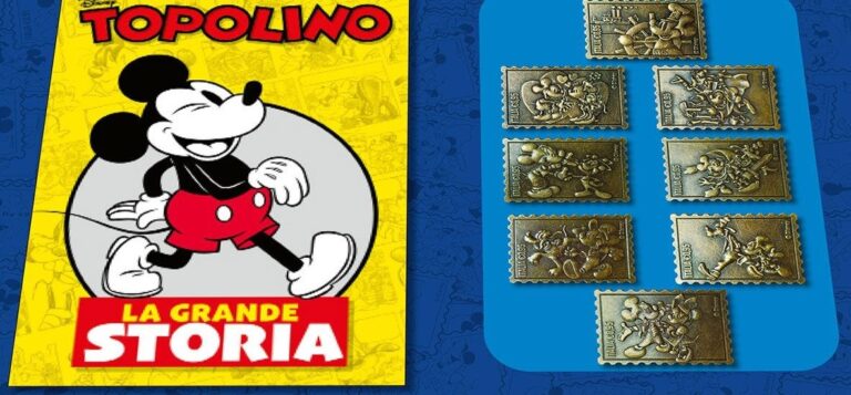 Ovviamente, poi, il punto forte di questo box sono gli 8 francobolli di metallo che celebrano la Grande Storia di Topolino, riprendendo anche avventure storiche come L’Inferno di Topolino e Steambot Willie. Potete trovare il box in tutte le librerie, fumetterie e online al prezzo di 39,90€.