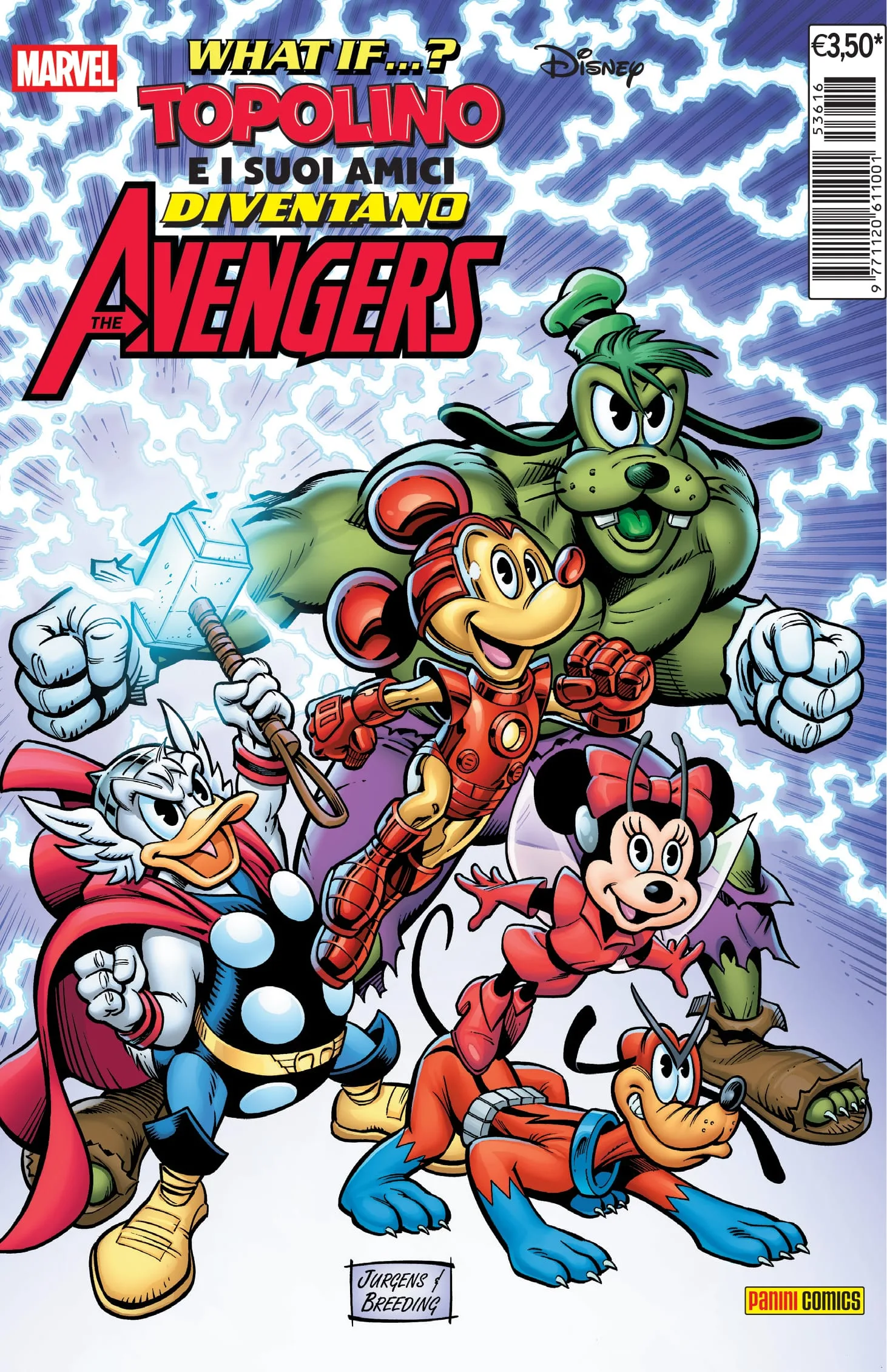 Dopo aver visto Paperino nei panni di Wolverine e di Thor, Minniin quelli di Capitan Marvel, o ancora i Fantastici Quattro interpretati da Topolino, Paperino, Minni e Pippo, è giunto il momento di “unire le forze” con What if…? Topolino e i suoi amici diventano The Avengers. Ancora una volta, grazie al sapiente adattamento firmato dal noto autore di racconti per ragazzi Steve Behling, da Luca Barbieri (che ha sviluppato la sceneggiatura) e da Alessandro Pastrovicchio (che ha realizzato i disegni), la contaminazione tra i due universi produce esiti brillanti e inaspettati, e personaggi memorabili. In questo caso, gli Avengers si portano dietro tante personalità e altrettanti poteri, dando ampio spazio alla fantasia degli autori. «Tutti i personaggi sono stati molto divertenti da scrivere, ma quello più soddisfacente, proprio per le iniziali difficoltà e il ragionamento a monte per adattarlo, è stato Gastone-Loki. I personaggi più spontanei da scrivere, invece, sono stati Pippo-Hulk e Paperino-Thor. Il più complicato? Direi senz’altro Pluto Ant-Man, per la difficoltà di farlo interagire con Minni-Wasp senza farlo parlare, ma facendolo “recitare” con la mimica», commenta Luca Barbieri.