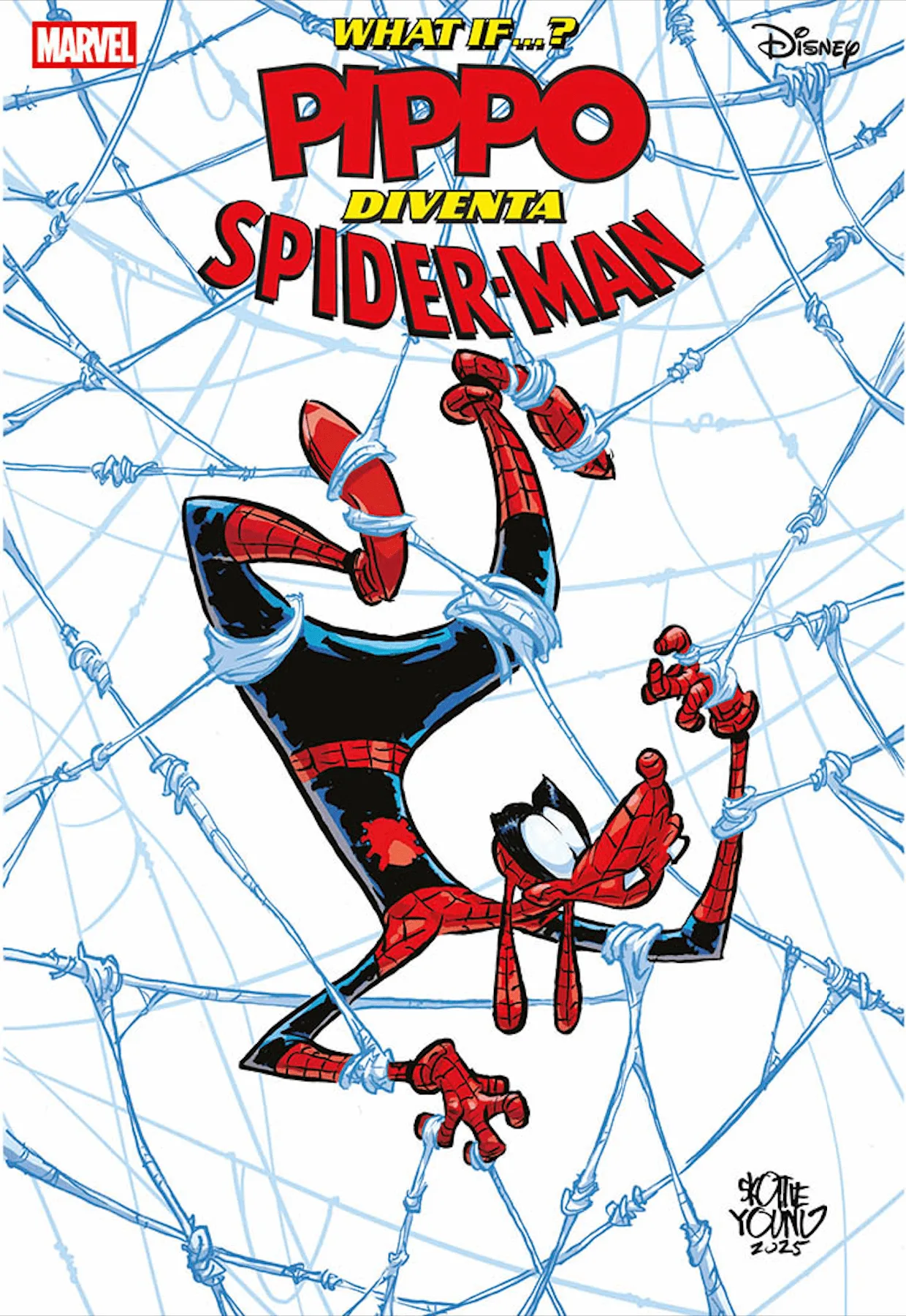 Nella carrellata di storie dedicate ai supereroi Marvel interpretati dai beniamini del mondo Disney non poteva mancare What if…? Pippo diventa Spider-Man, “origin story” che racconta gli esordi supereroistici di Spider-Pippo: veloce, agile, capace di sparare ragnatele e aderire alle superfici, fortissimo, ma anche simpaticissimo! La storia – nata da un’idea dell’autore per ragazzi Steve Behling – ha preso forma grazie alla divertente sceneggiatura di Riccardo Secchi e ai dinamici disegni di Francesco D’Ippolito.