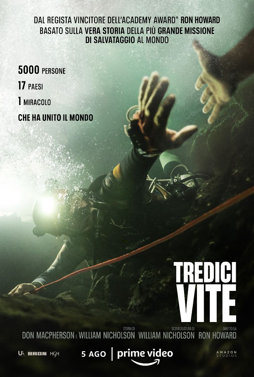 TREDICI VITE racconta l’incredibile storia vera dell’enorme impegno globale per salvare una squadra di calcio thailandese rimasta intrappolata nella grotta di Tham Luang durante un improvviso temporale. Di fronte a difficoltà insormontabili, una squadra di sommozzatori tra i più abili ed esperti al mondo – gli unici in grado di percorrere un labirinto di angusti tunnel allagati – si unisce alle unità di soccorso thailandesi e a più di 10.000 volontari per tentare uno straziante salvataggio dei dodici ragazzi e del loro allenatore. Con una posta in gioco incredibilmente alta e sotto lo sguardo del mondo intero, il gruppo intraprende la sua immersione più impegnativa, mostrando la grandiosità dello spirito umano.