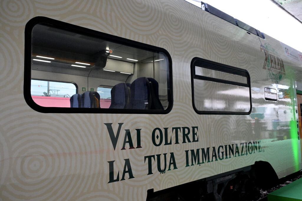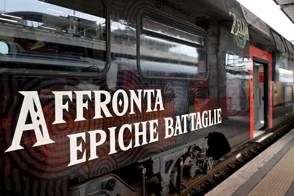 Il treno regionale Rock dedicato al sequel di The Legend of Zelda: Breath of the Wild, vincitore del titolo di “miglior videogioco dell’anno 2017” ha portato i viaggiatori nella magia di Hyrule. Il piano inferiore della carrozza 3 del treno, è interamente personalizzato con grafiche ed elementi ispirati ai personaggi e alle ambientazioni di The Legend of Zelda: Tears of the Kingdom, in una perfetta rievocazione dell’atmosfera che ha contraddistinto già dal primo capitolo la rivoluzione della saga di The Legend of Zelda. Qui, la stessa atmosfera è portata in vita da un parallelismo con le bellezze e le località d’Italia raggiungibili proprio con il treno livreato che, per l’occasione, si sono trasformate in luoghi presenti nella Hyrule del videogioco.