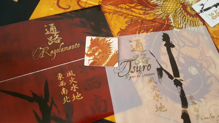Per tutto il resto, invece, il gioco è ben realizzato, in particolare le pedine di buona qualità e il bellissimo disegno sul tabellone. Pregevole anche l’impostazione verticale del regolamento, che si apre come se stessimo leggendo un’antica pergamena orientale.