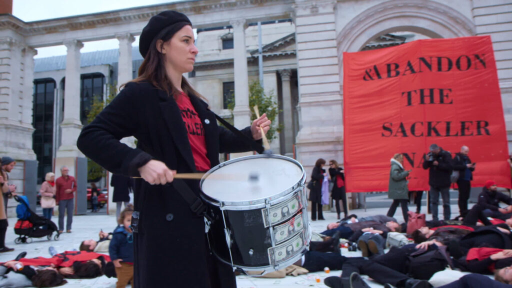 Da sempre attivista, sin da quando l’HIV era a torto considerato una malattia dei soli omosessuali, Neil Godin ci racconta della sua battaglia contro la famiglia Sackler. Dopo aver fondato PAIN (Prescription Adiction Intervention Now) comincia una serie di dimostrazioni in celebri musei, i quali hanno ricevuto donazioni dalla famiglia Sackler, intitolandogli in cambio ale dei loro musei. Difatti i Sackler da anni, tentavano di ripulire la loro immagine pubblica, avendo molti scheletri nell’armadio. Questa famiglia che ha fatto fortuna grazie all’industria farmaceuitica, è non a caso, legata a doppio filo nella cosidetta epidemia da oppiodi che ha investito gli Usa. Il consumo massiccio di medicinali contenenti ossicodone, prescritti dai medici e prodotti dalla famiglia Sackler, crea infatti grande dipendenza in chi li consuma. La dipendenza è tale, che i pazienti, finito il trattamento prescritto, non riescono a interromperne il consumo. Lo step successivo è sovente il passaggio ad altre droghe, con dipendenze che protraendosi nel tempo, si rivelano in moltissimii casi letali. Il fine delle proteste, che hanno avuto grande risonanza e hano portato ad un processo, era dunque quello di sensibilizzare l’opinione pubblica sul tema. La speranza era che il grande clamore mediatico, potesse produrre una forte pressione sui governi e musei. Insomma ciò che in gergo è defintio un grass-roots lobbying.