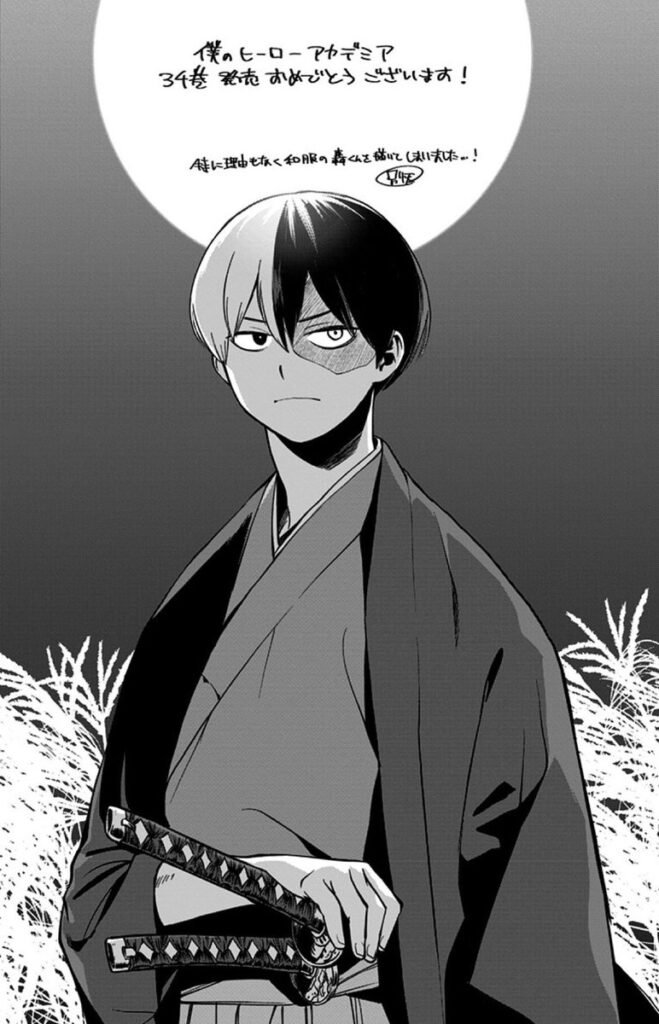 Betten Court ha condiviso il nuovo artwork di Shoto nei panni di un samurai per congratularsi con Kohei Horikoshi, il creatore di My Hero Academia, per il trentaquattresimo volume della serie manga.