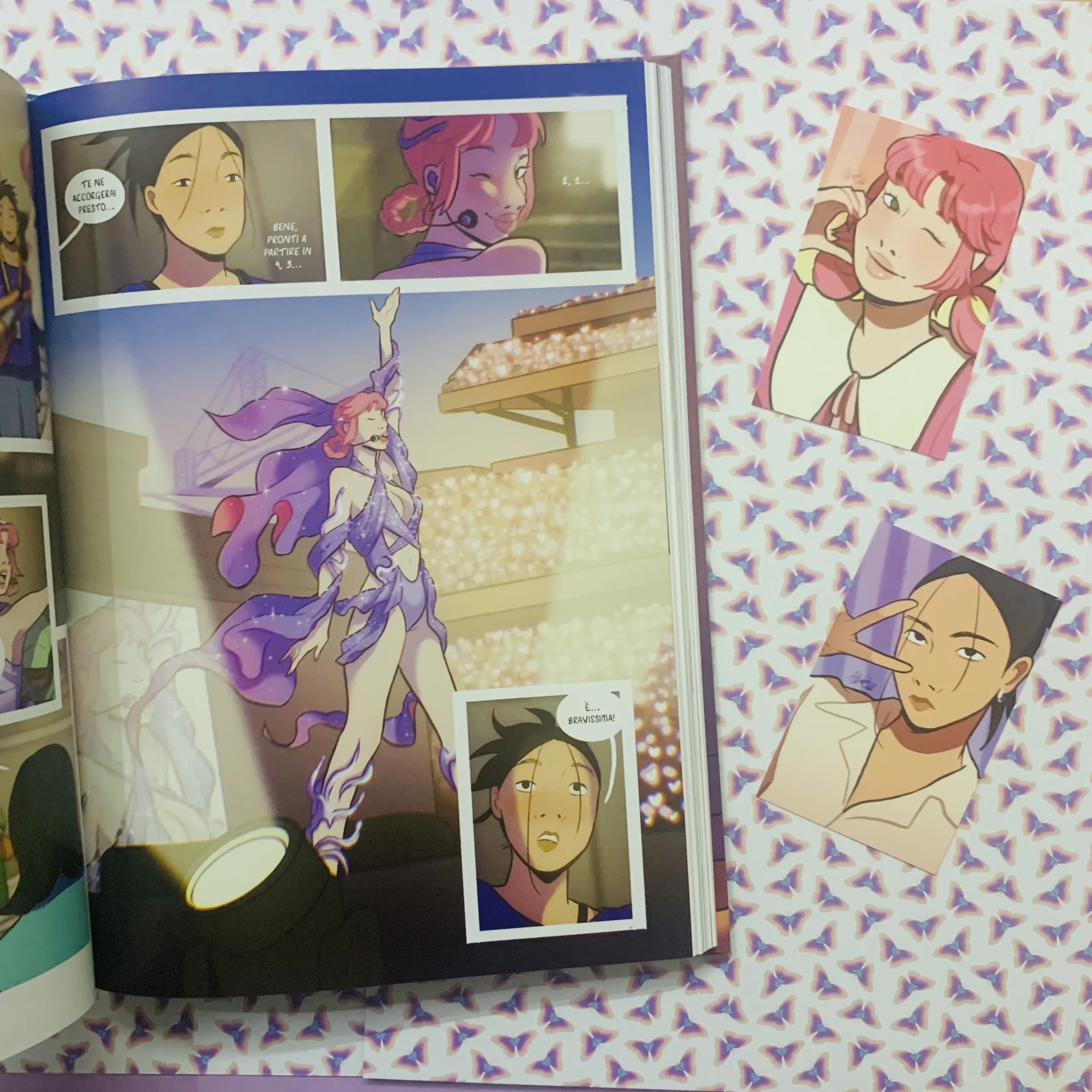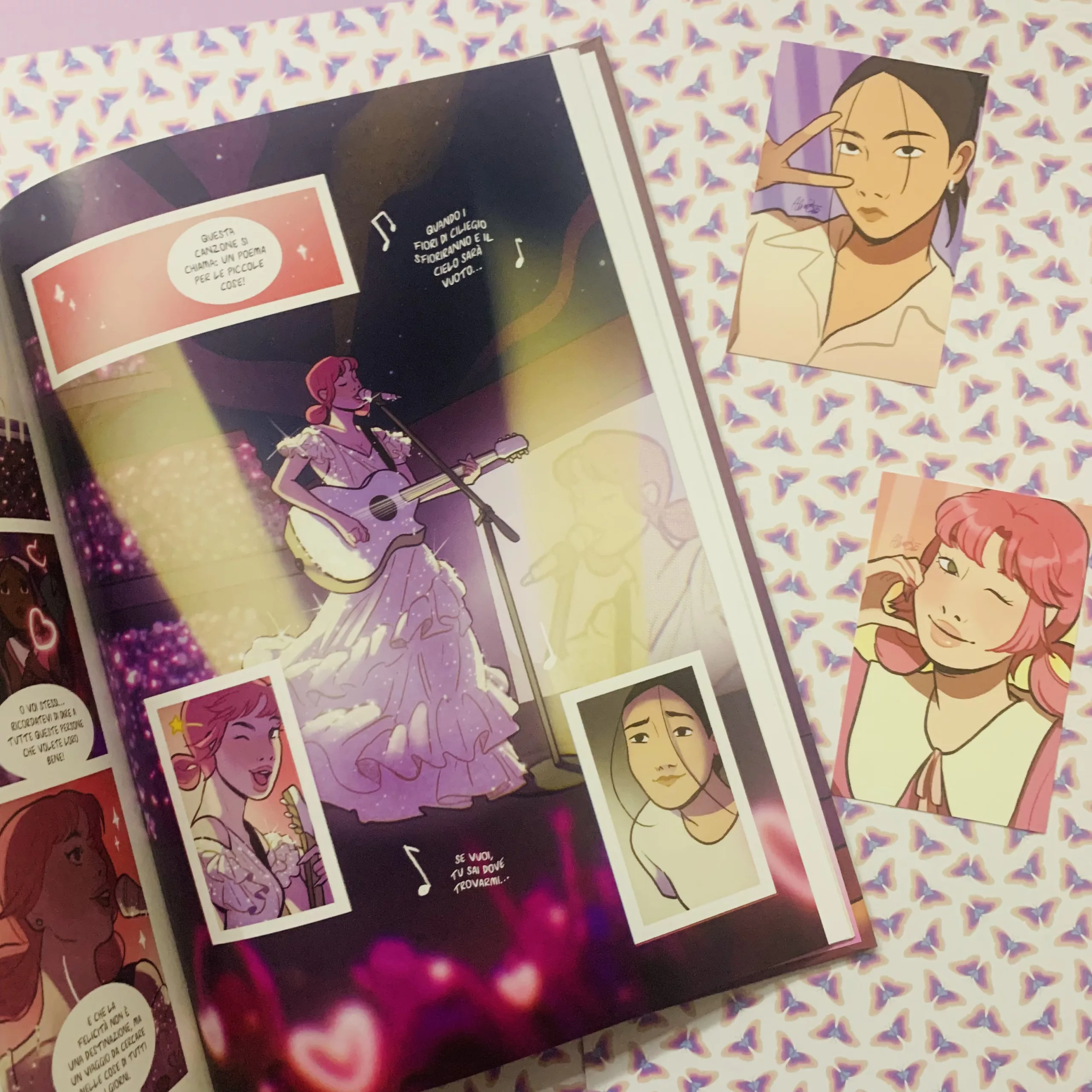 In tal senso è un fumetto intimo che parla ad ognuno in maniera diversa. Possiamo riconoscersi in Salut o Xin-Yeong, nei diversi aspetti del loro carattere e mille sfaccettature tra pregi e difetti. Ci fa immergere in Corea e nella sua affascinante cultura non solo pop, dando la giusta dose di informazioni e note che permettono di apprezzare questo paese anche se sconosciuto. Ci fa viaggiar per il mondo toccando diversi luoghi diversi, immersi nella natura più autentica, e ci trascina sul palco con Salut e la sua musica che possiamo sentir uscire dalle pagine di Un poema per le piccole cose. Lo stile di Alice Berti si snoda tra momenti divertenti con i personaggi deformati, ma si concentra molto sul loro design e movimenti, con uno stile pulito ma ben definito. Rende molto bene anche i luoghi fisici donando loro un tocco di magia e poesia che si sposano bene con la storia che racconta senza però snaturarli.
