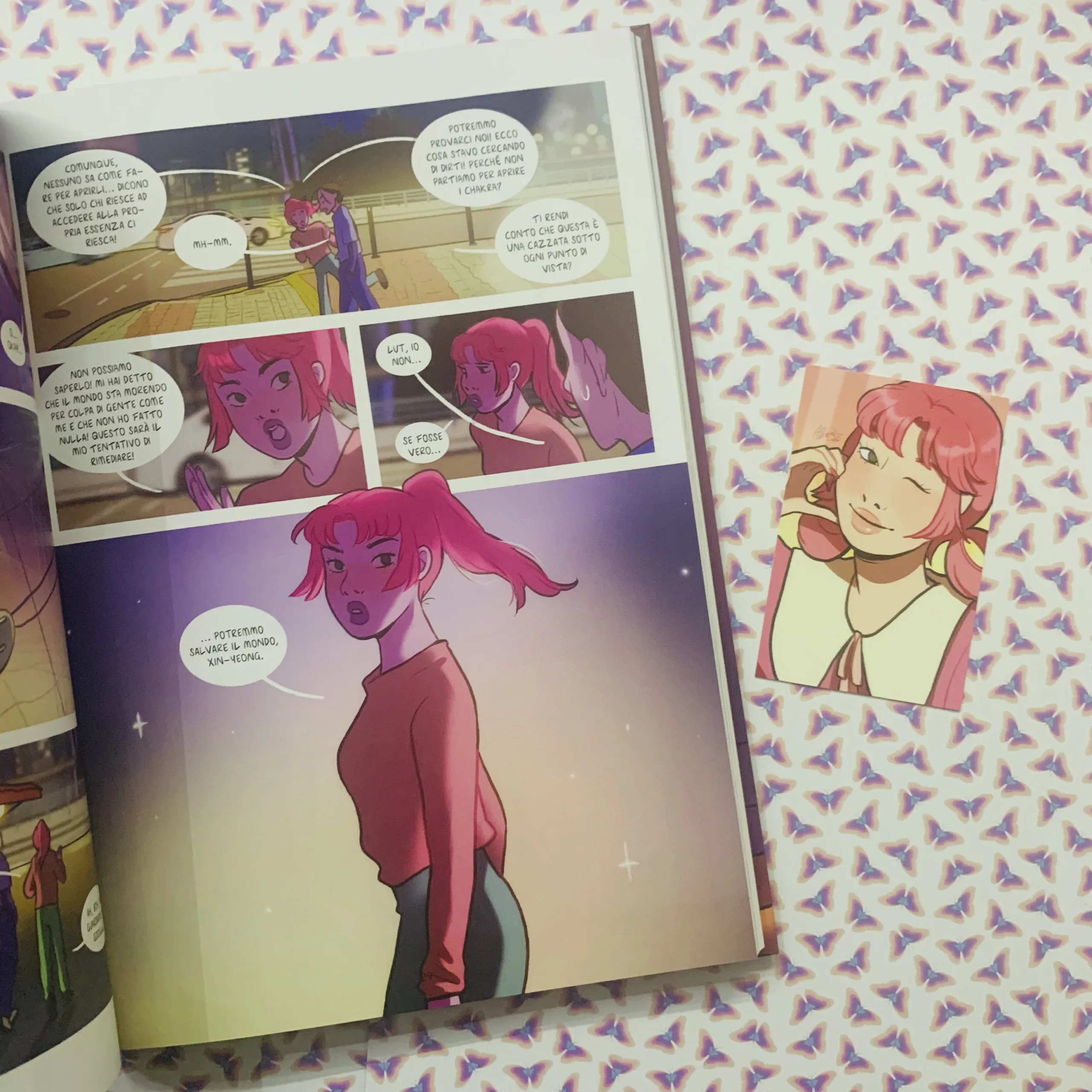 Un poema per le piccole cose è infatti una storia molto introspettiva nonostante elementi che fanno credere che si tratti di una storia di avventura. In realtà il focus è sulle due protagoniste e il loro viaggio è fisico ma sopratutto psicologico. Salut e Xin-Yeong vogliono farla finita perché disilluse dalla vita e con la fine del mondo vicina che senso ha andare avanti? Ma il non riuscire a suicidarsi e incontrarsi sempre nel tentativo di farlo, porta in particolare Salut a riconsiderare tutto e trovare una nuova ragione per vivere. Yeong è più scettica, più realista e meno sognante di Salut ma si imbarca con lei perché infondo non ha nulla da perdere nella sua vita dura e solitaria. Il mondo di Salut inoltre è folle e meraviglioso, dall’altra terribile nel vedere come l’industria del K-pop sfrutti gli artisti; il loro duro lavoro, regole, rapporti con la stampa e i fan. Una vita non proprio idilliaca nonostante i privilegi che la ragazza gode. Xin Yeong come il lettore potrà vedere i due lati della star, quello pubblico sul palco che affascina tanti e quello privato e intimo che svelerà solo a Yeong, la sua sessualità e le sue debolezze. Dall’altra Yeong, a suo modo, mostrerà il suo valore, la sua argutezza e l’essere una vera assistente e confidente, un’amica e forse qualcosa in più sulla quale Salut può contare in ogni momento della sua vita anche lavorativa.