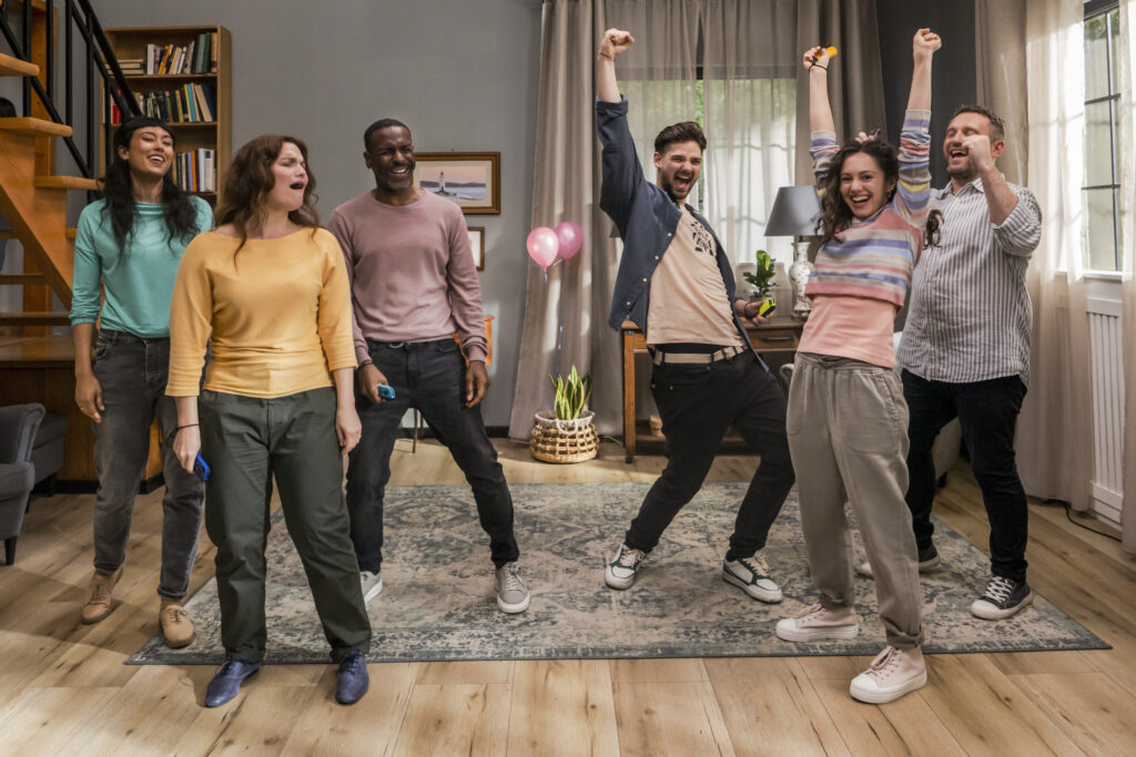 Qualsiasi occasione è buona per radunare amici e parenti e lanciarsi in sfide coinvolgenti e sempre diverse grazie ai 17 minigiochi di Everybody 1-2-Switch! La modalità Joy-Con permetterà di giocare fino a 8 giocatori in due squadre per scoprire chi ha l’affinità migliore gonfiando palloncini o correndo verso la vittoria in una staffetta 400m. Per animare le feste più numerose, inoltre, il divertimento è assicurato grazie alla modalità smartphone che coinvolge da 2 a 100 persone divise in 2 gruppi per vivere il pieno potenziale di questa esperienza interattiva unica e inimitabile. Tutti insieme appassionatamente, si potrà giocare a Bingoo fotografare l’ambiente per catturare i giusti colori. Sono previsti anche dei minigiochi compatibili sia con i Joy-Con sia con gli smartphone: dal mitico Un, Due, Tre, Stella! a domande di cultura generale e tanti altri giochi ancora. Non manca inoltre una modalità singola che metterà tutti contro tutti con Festa Bingo e Mix di Domande: la sfida definitiva che permetterà di personalizzare i quesiti per adattarli letteralmente a ogni occasione!
