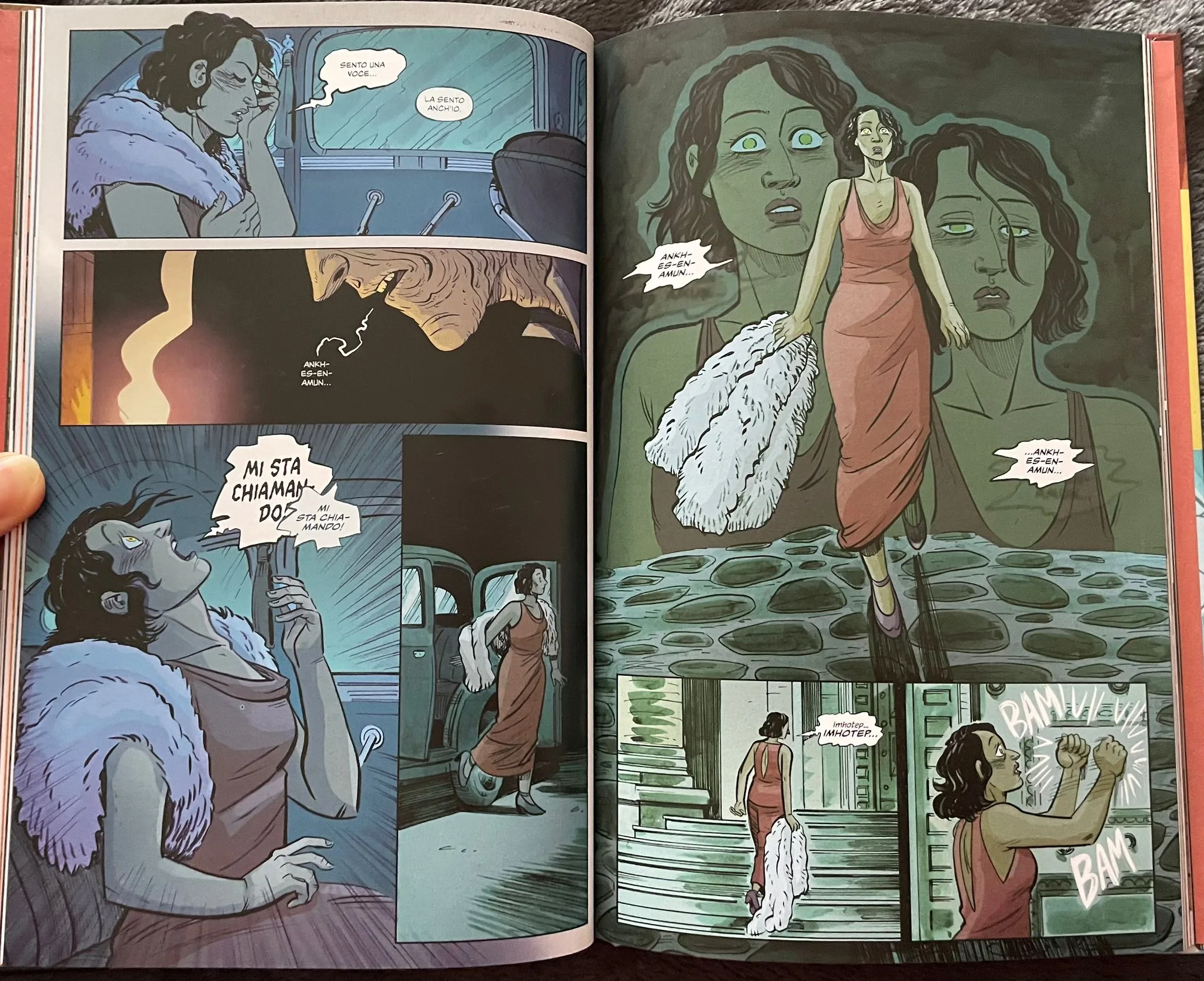 Qui si inserisce l’elemento horror e sovrannaturale, che, tuttavia, risulta poco incisivo in questa trasposizione. Al di là di qualche scena, soprattutto nel finale, Universal Monsters: La mummia risulta una storia più romantica che spaventosa. Indubbiamente anche il film del 1932 era meno terrificante rispetto a quelli dedicati ad altri mostri, ma l’interpretazione del sempre magnifico Boris Karloff nei panni di Imhotep riusciva a rendere il tutto molto più inquietante. Le qualità artistiche di Faith Erin Hicks sono indubbie e le sono valse anche dei premi, ma forse il suo stile non è il più azzeccato per questa storia, almeno se l’idea è quella di esaltare il lato più “mostruoso” del protagonista.