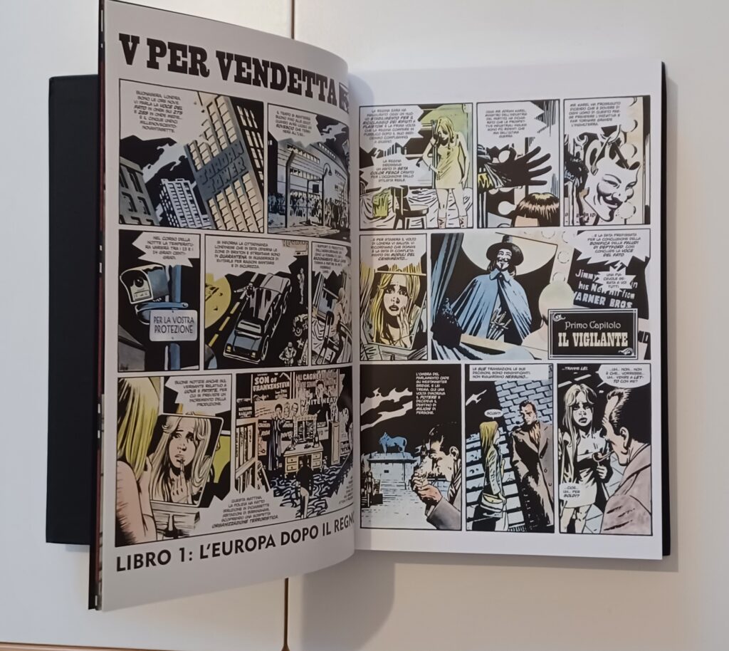 Insieme a Marvelman, ora Miracleman, V per Vendetta rappresenta il mio primo tentativo di scrivere una serie regolare, proprio all’inizio della mia carriera. Per questo e per altri motivi, nei primi episodi ci sono alcuni elementi che suonano un pò strani quando li si giudica alla luce di come la serie si sviluppa in seguito. Mi auguro che vogliate avere pazienza quando leggerete queste incertezze iniziali, e che concordiate che la cosa migliore sia pubblicare quei primi episodi senza sottoporli ad alcuna revisione, mostrarli con tutti i loro pregi e difetti, piuttosto che tornare indietro e cancellare tutti i segni dell’inesperienza creativa dei nostri anni giovanili.