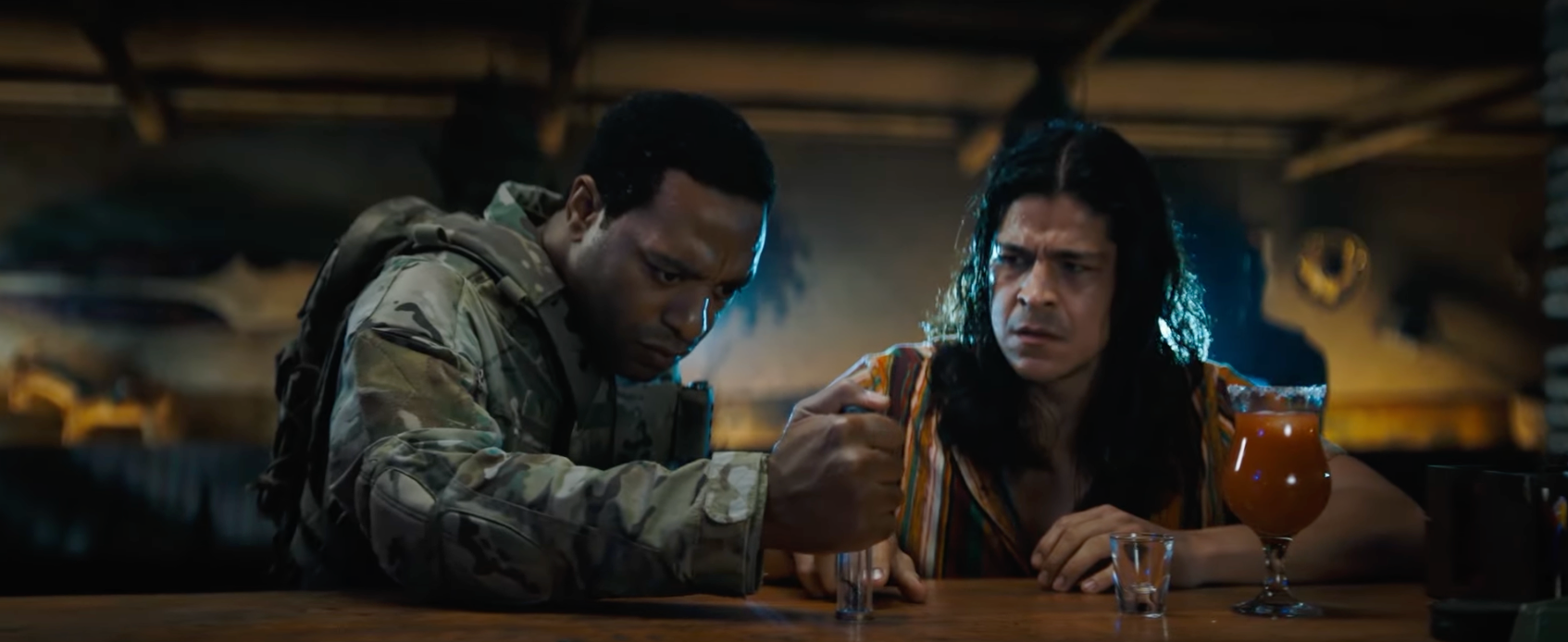 L’ultima volta che lo abbiamo visto, Eddie è scomparso in un lampo di luce bianca, lasciando un barista (il Cristo Fernández di Ted Lasso) a brontolare per un conto non pagato e senza mancia. Ma Eddie ha lasciato qualcosa dietro di sé: un piccolo globo del simbionte alieno nero come l’inchiostro. Riprendendo da dove si era interrotta la scena mid-credits di Spider-Man: No Way Home, il trailer di Venom 3 mostra un militare senza nome (interpretato da Chiwetel Ejiofor di Doctor Strange) in quello stesso bar che usa un bicchiere per contenere il simbionte prima che il barista, ancora una volta interpretato da Fernández, possa toccare il parassita alieno.