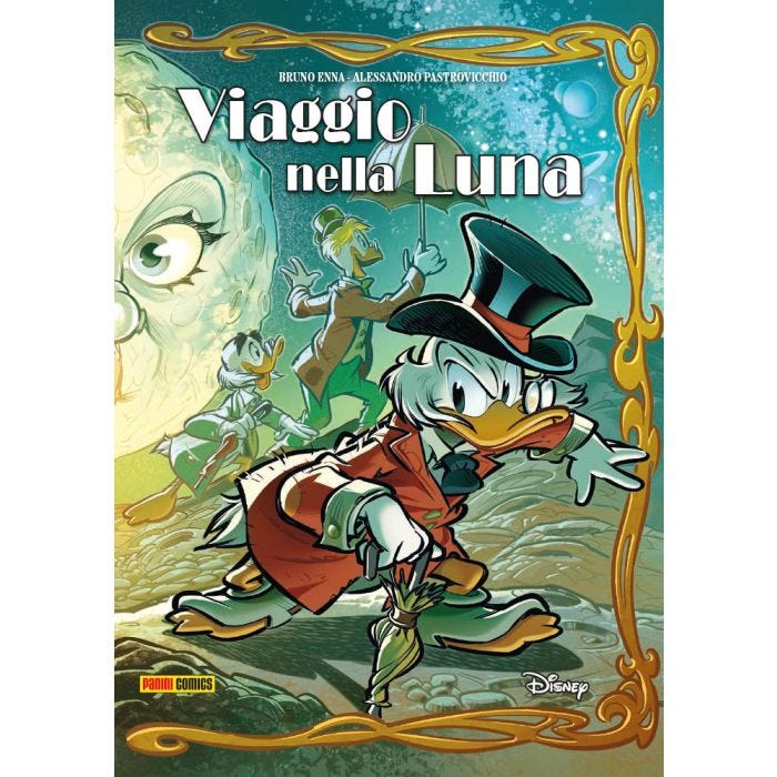 Abbiamo letto Viaggio nella Luna, l’omaggio ai fumetti di Bruno Enna e Alessandro Pastrovicchio, al primo maestro della fantascienza cinematografica Georges Méliès. Torna infatti in edizione deluxe la rielaborazione in chiave disney dei due capolavori del regista francese e più in generale della storia del cinema, ovvero: “Viaggio sulla Luna” e “Viaggio attraverso l’impossibile“. Ecco dunque la nostra recensione senza spoilers !