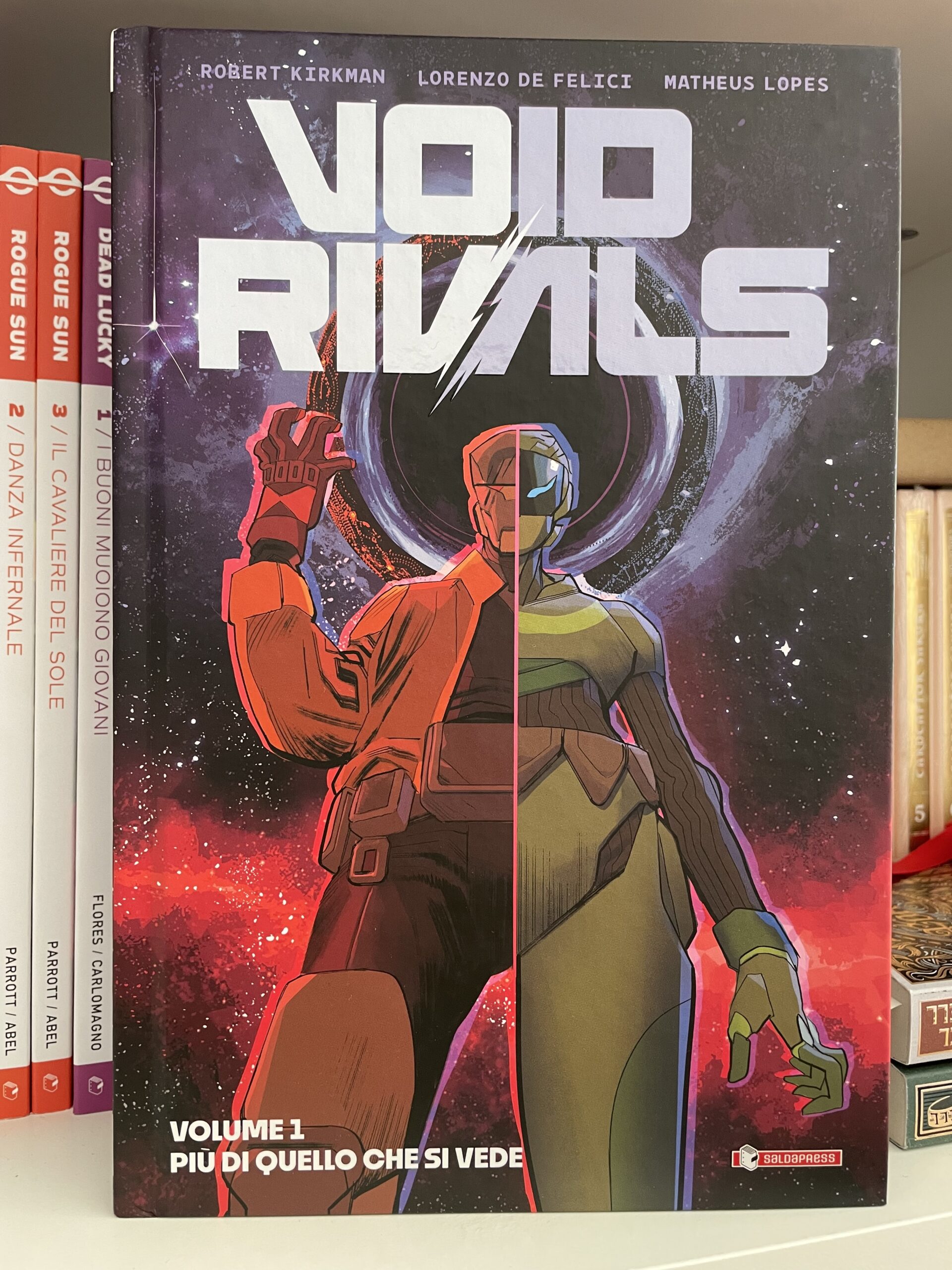 L’Energon Universe ha ufficialmente inizio anche in Italia! Dopo le anteprime degli scorsi mesi (ve ne avevamo parlato qui), SaldaPress ci porta il primo volume di Void Rivals, la serie scritta da Robert Kirkman e disegnata da Lorenzo De Felici che costituisce il trampolino di lancio di un nuovo universo narrativo. Scenari sci-fi e un cast di personaggi inediti che sapranno appassionarvi sin dalle prime pagine, in una storia che dissemina qualche indizio su quello che verrà e sulle altre testate collegate, prima tra tutte Transformers di Daniel Warren Johnson. Ma di cosa parla Void Rivals?