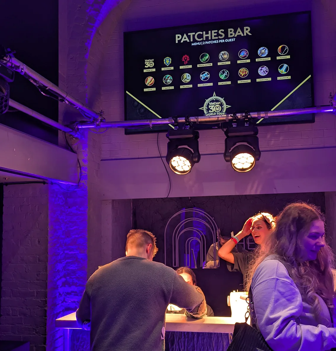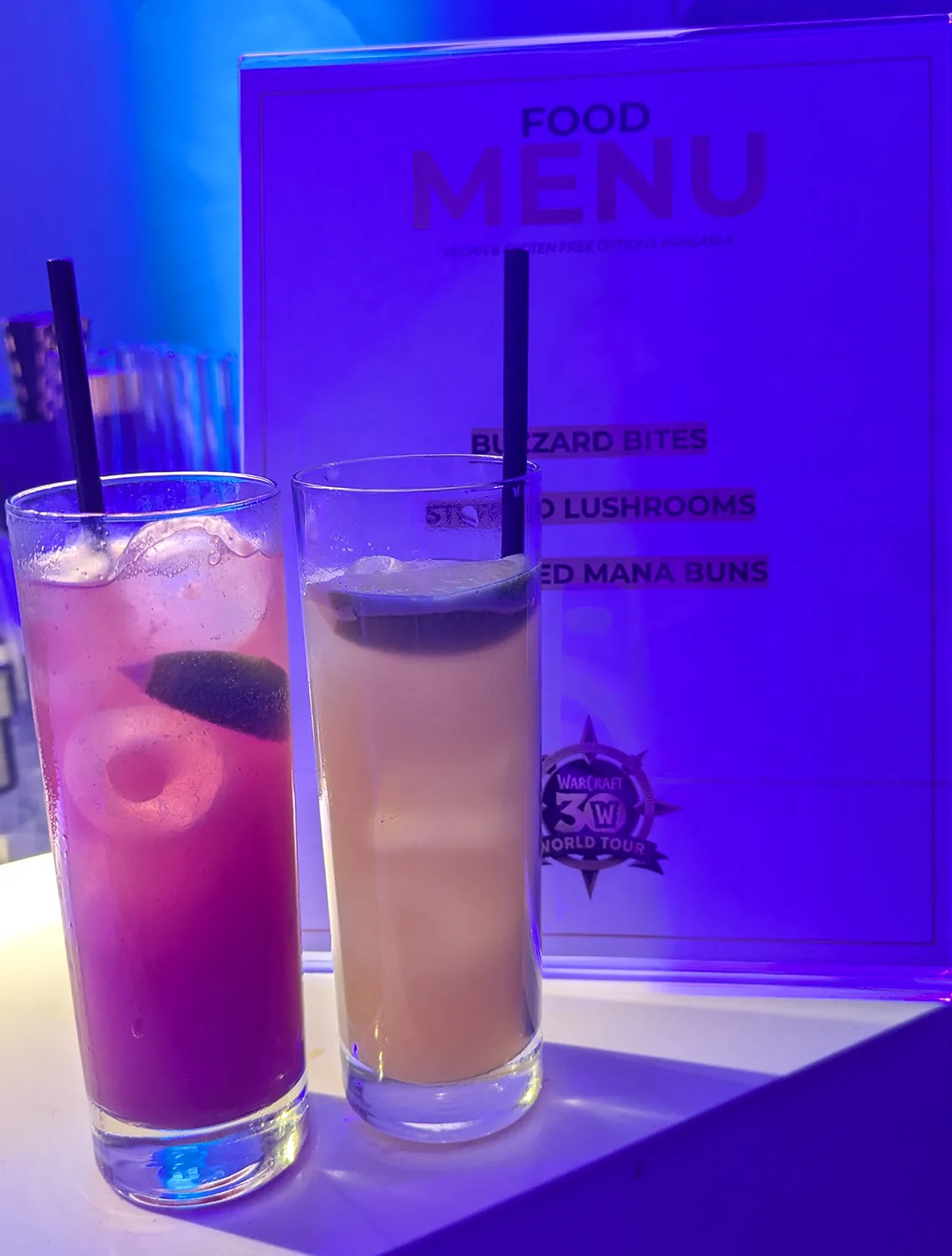 Anche la schedule prevista è stata rispettata a dovere e, per quanto mi riguarda, sono riuscita a fare e seguire tutte le attività dell’evento senza particolari problemi. Poi siamo stati letteralmente riempiti di merchandise, cosa che assolutamente non mi aspettavo. Oltre ad aver vissuto un mese in clausura per non ammalarmi, ho anche fatto una vita di stenti e privazioni perchè volevo risparmiare il più possibile per potermi eventualmente comprare la qualunque durante la mia permanenza a Londra ma… non c’è stato bisogno di sborsare un soldo, perchè ci siamo portati a casa gratuitamente: una sciarpa con delle patch esclusive, la maglietta dedicata, un premio dalla Ruota della Fortuna di Azeroth, un poster autografato dai dev, codici per delle ricompense ingame, una spilla, un plushie… certo, non potevo sapere che i soldi risparmiati mi sarebbero comunque serviti per pagarmi i cocktail tematici che venivano serviti (gli unici a pagamento, in quanto alcolici) durante l’evento: 15 sterline di cocktail che tra l’altro erano pure pre-mixed paiono eccessive anche a me che sono abituata alla movida milanese (seh ma chi ci crede, sono una nerd che fa la vita da pensionata, dai).