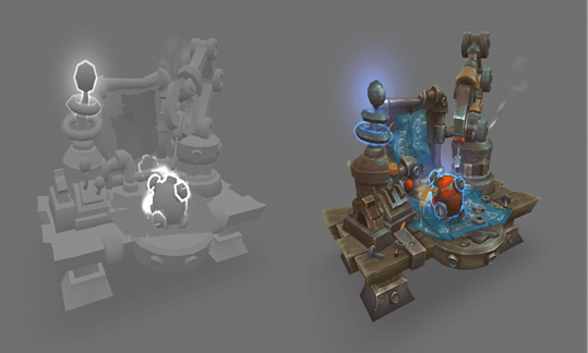 “Ho voluto inserire il maggior numero possibile di elementi visivi per ogni professione, oltre a qualche Easter egg per ognuna di esse, come il Runed Copper Rod per il tavolo dell’Incantesimo o l’Arclight Spanner per il tavolo dell’Ingegneria”. Poteri condivisi.