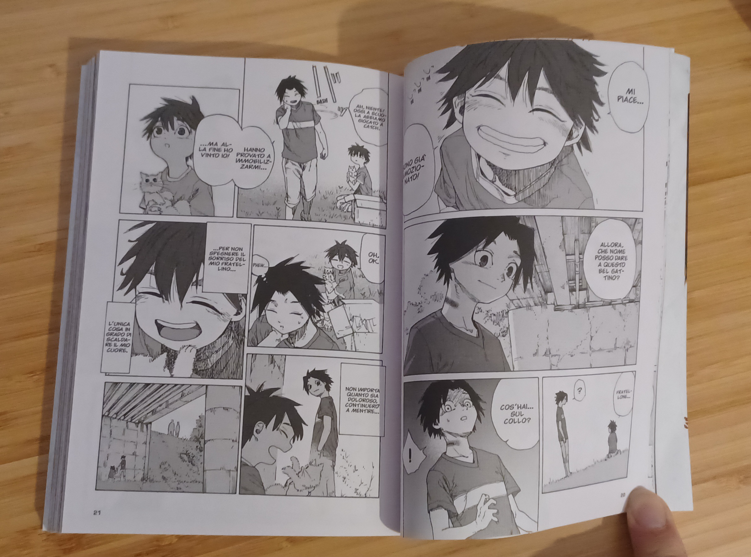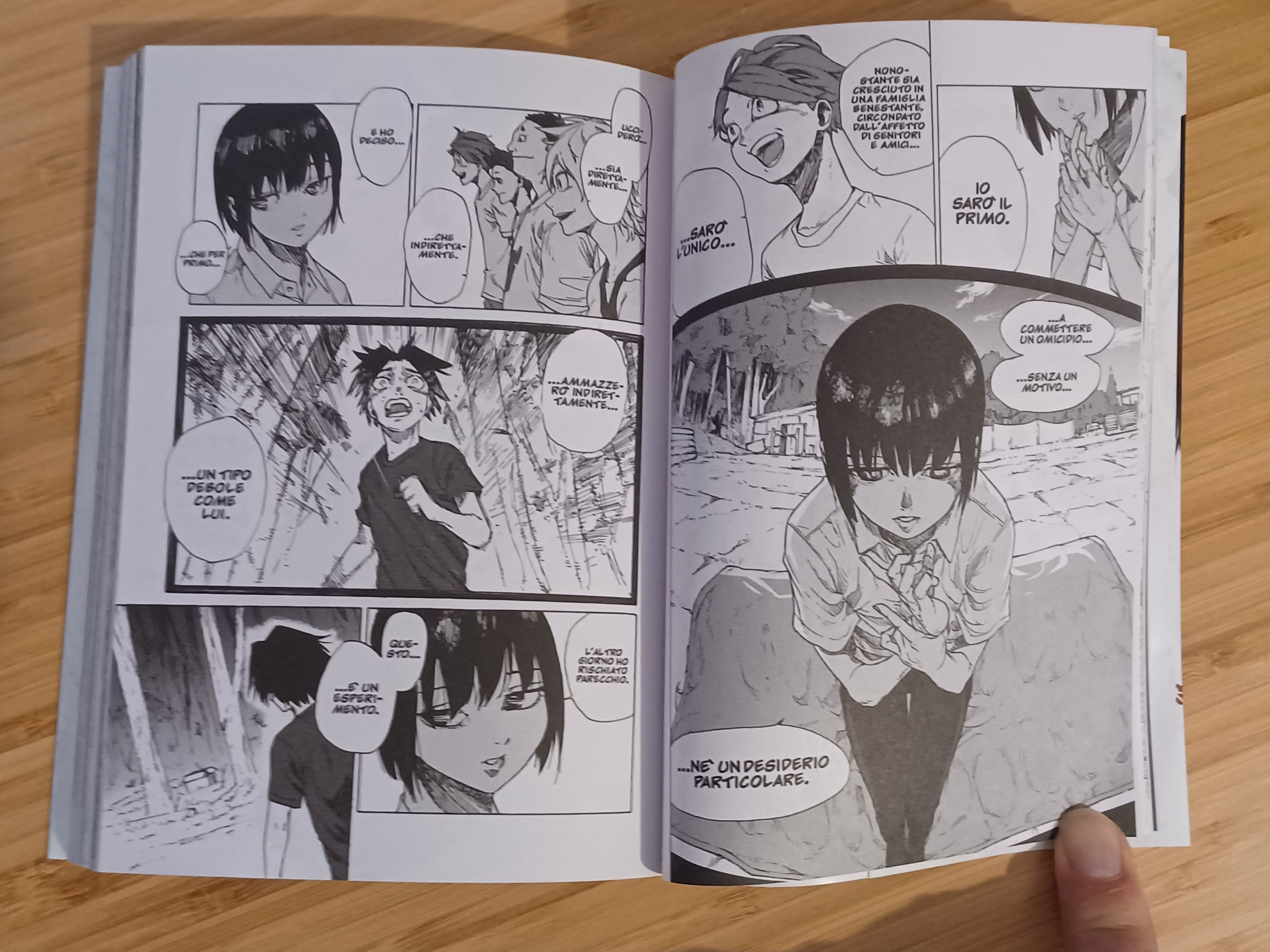 Questo primo volume offre in maniera del tutto naturale uno spunto di riflessione su violenza e morale, sulla giustificazione della prima e sull’ambiguità della seconda. Anche i “cattivi” ci vengono presentati abbastanza in fretta, ma visto come prosegue la storia immagino ci sia tempo per aporofondire anche loro nei prossimi volumi. Subito in questo primo volume poi la storia cambia direzione e si passa dal bullismo alla vendetta semplicemente con un salto temporale e ovviamente con la crescita del protagonista, protagonista che metterà in atto scene di violenza ancora peggiori di quelle che subiva. In questo punto della storia, credo sia naturale fare il tifo per Shun e non vedere l’ora che la vendetta si compia ma in più momenti ci si ritrova anche a chiedersi se sia giusto questo tipo di vendetta.