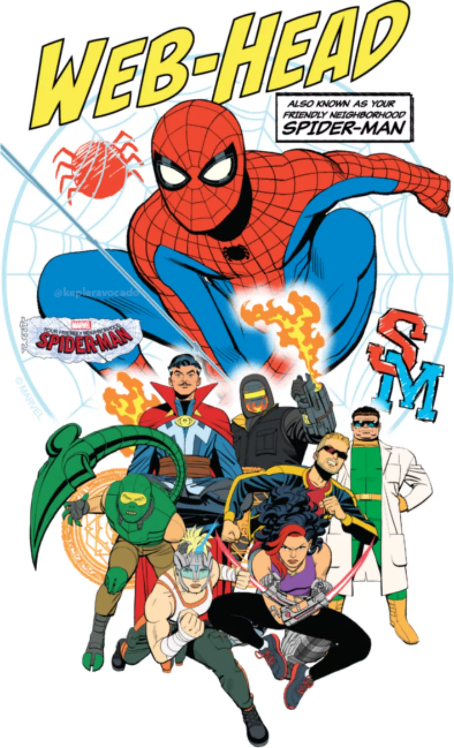 Un nuovo artwork promozionale apparso sui social media mostra alcune delle tute che Spider-Man indosserà nel corso della serie di 10 episodi – tra cui la tuta fatta in casa di Peter, la tuta Oscorp (una rivisitazione della tuta della Fondazione Futuro) e la classica tuta rosso-blu – e un nuovo sguardo alla galleria di canaglie della testa di ragnatela. Guardate l’artwork qui sotto, per gentile concessione di @kepleravocado: