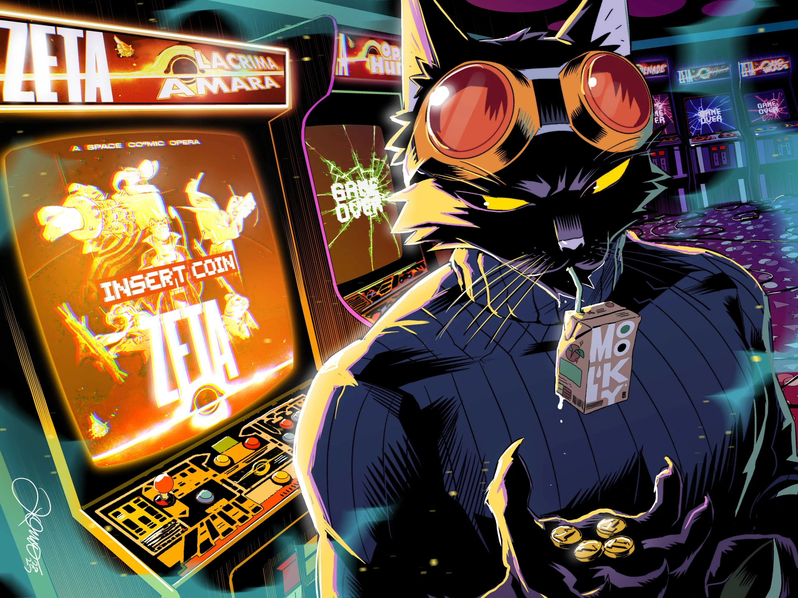 ZETA nasce dall’idea di raccontare l’universo attraverso le nove vite del Capitano Flint, un gatto siderale che affronta guerra, amicizia, amore e perdita in una galassia spaccata tra Papato e Impero, in lotta per il potere di due soli.