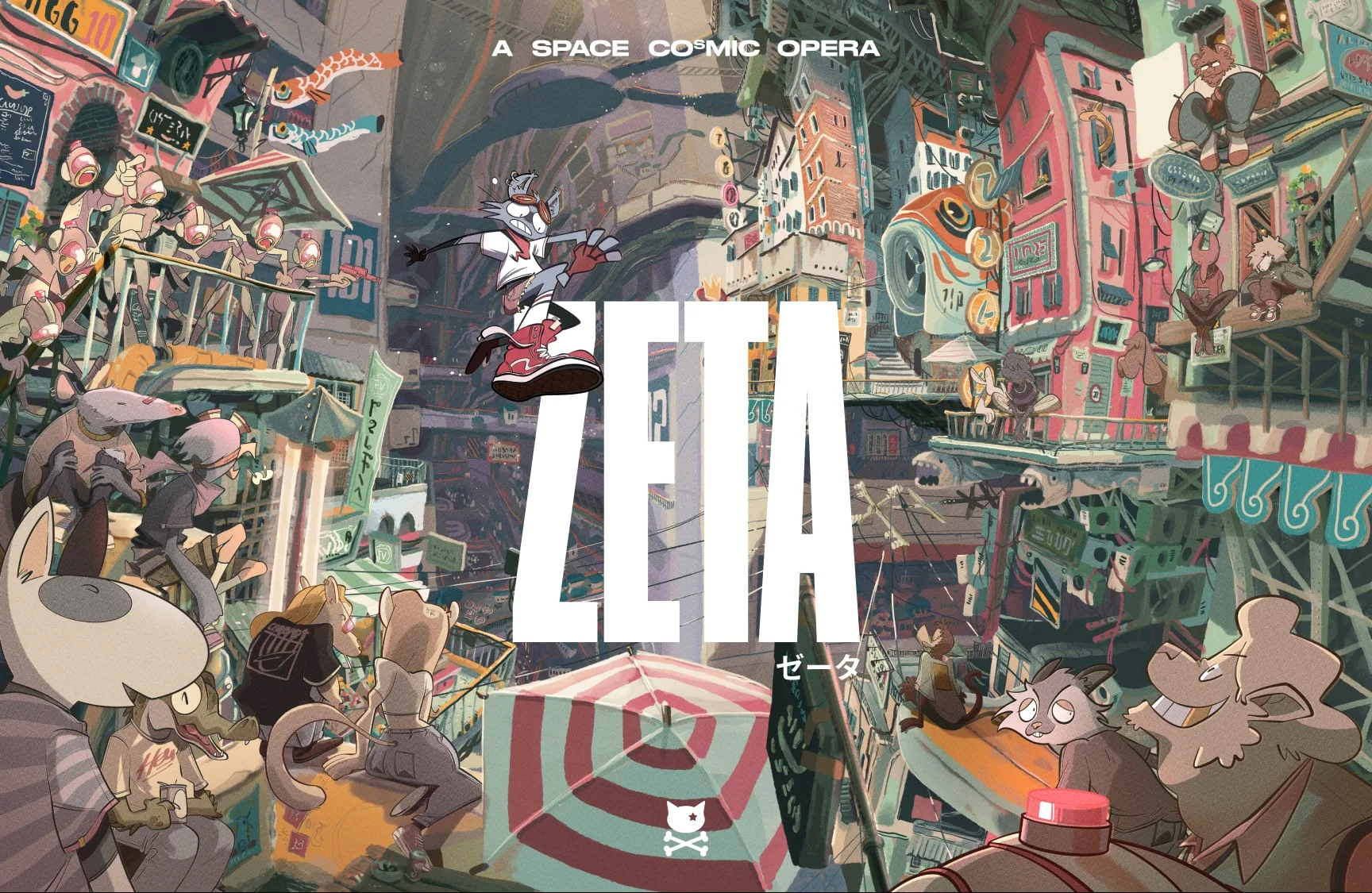 ZETA nasce dall’idea di raccontare l’universo attraverso le nove vite del Capitano Flint, un gatto siderale che affronta guerra, amicizia, amore e perdita in una galassia spaccata tra Papato e Impero, in lotta per il potere di due soli.