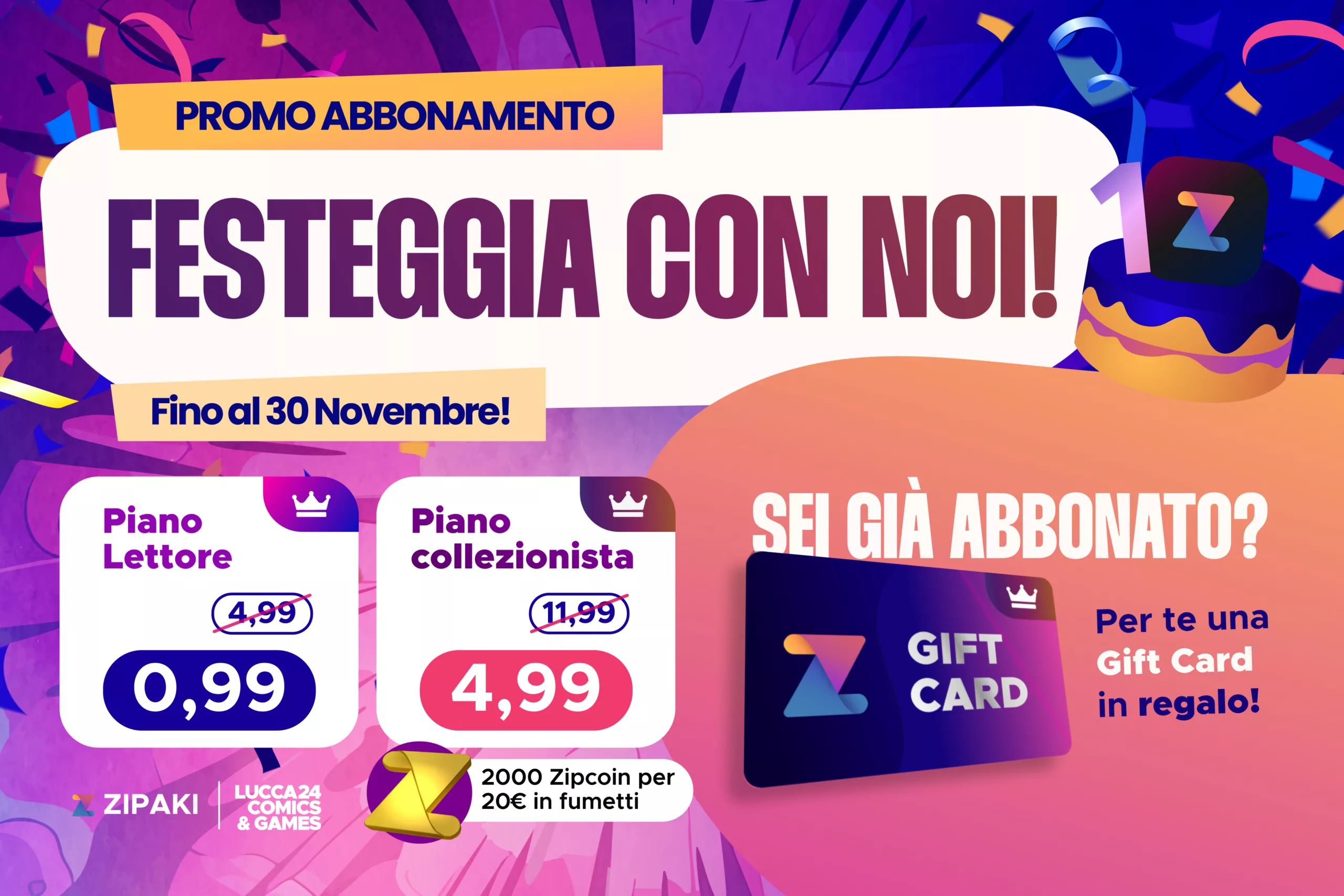 L’11 novembre 2023, Zipaki ha segnato un modo nuovo per accedere ai fumetti digitali in Italia. A distanza di un anno, la piattaforma celebra risultati importanti: il catalogo è raddoppiato con più generi diversi, oltre 40.000 download e un costante aumento di utenti attivi e abbonati.