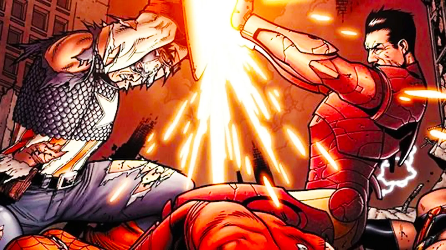 La battaglia finale tra Steve Rogers (Chris Evans) e Tony Stark (Robert Downey Jr.) in Captain America: Civil War riprende direttamente la splash page di Civil War #7 (2007). La scena con il raggio repulsore di Iron Man contro lo scudo di Cap è diventata uno dei momenti simbolo del MCU e del fumetto moderno.