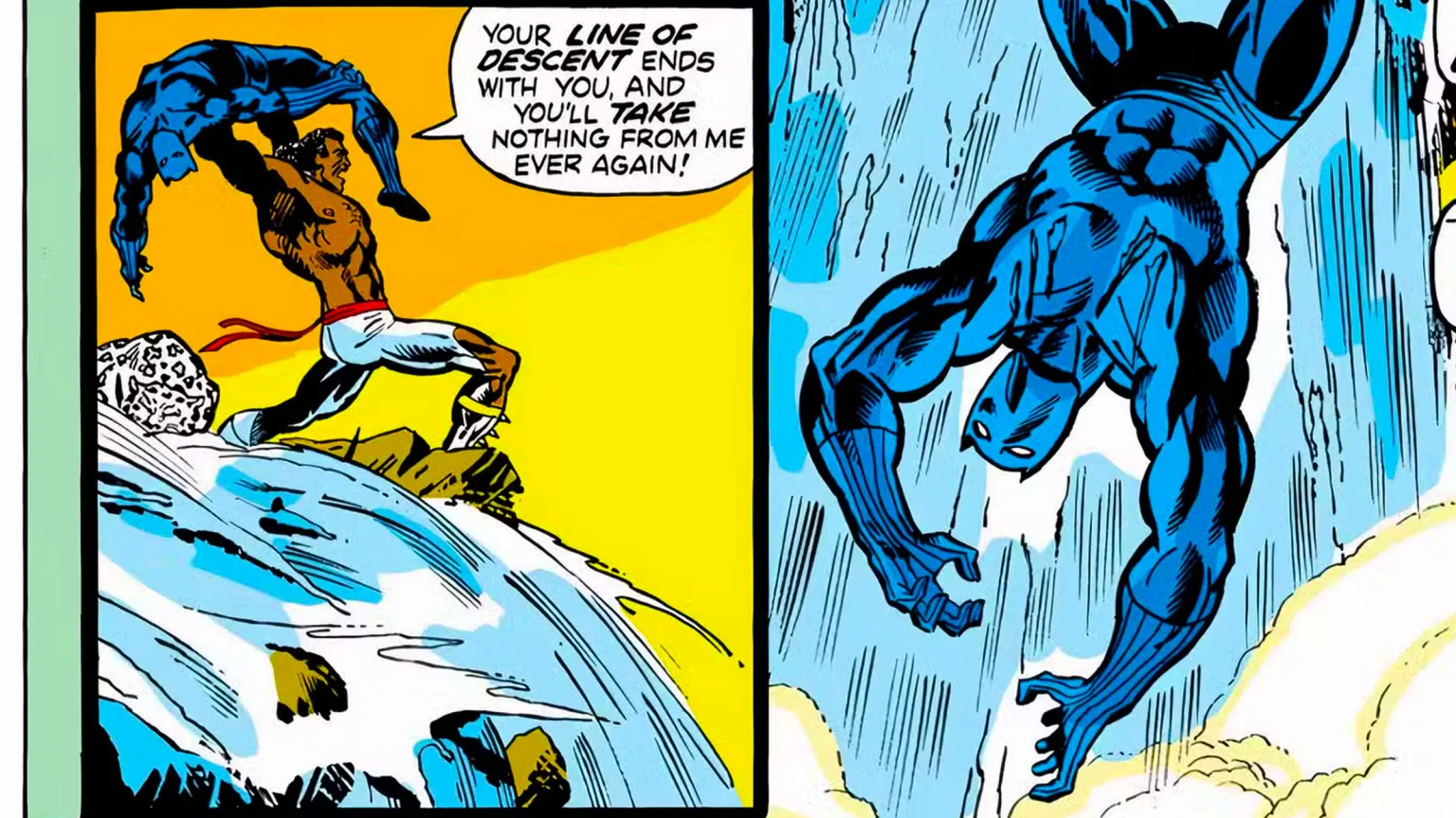 In Black Panther (2018), Killmonger (Michael B. Jordan) getta T’Challa (Chadwick Boseman) da una cascata, prendendo temporaneamente il trono di Wakanda. La scena deriva da Jungle Action (Vol. 2) #6 del 1973, con alcune differenze di contesto, ma lo stesso impatto drammatico.